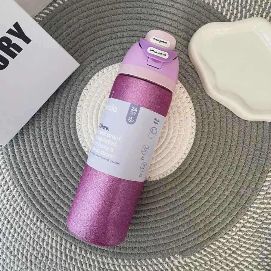 This 24oz/32oz insulated water bottle in a trendy purple design combines modern aesthetics with powerful insulation for all-day hydration.
