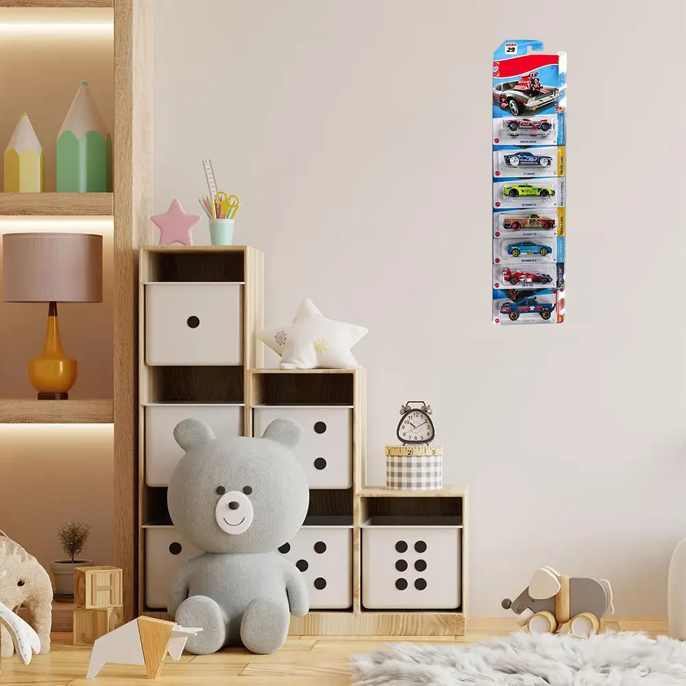 Suitable Size: Each packed car organizer measures 16.7 x 4.4 inches/42.5*11.2cm, Each toy car display case can hold approximately 9 cars.It is compatible with Packaged Diecast Car.