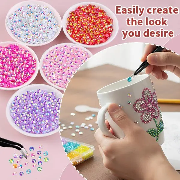 💎 Long-Lasting Sparkle: Our resin stones feature a durable AB coating that won’t fade or discolor. The strong glxx ensures your creations stay beautiful for years. Perfect for diamond painting, nail art, clothing customization, and more.
