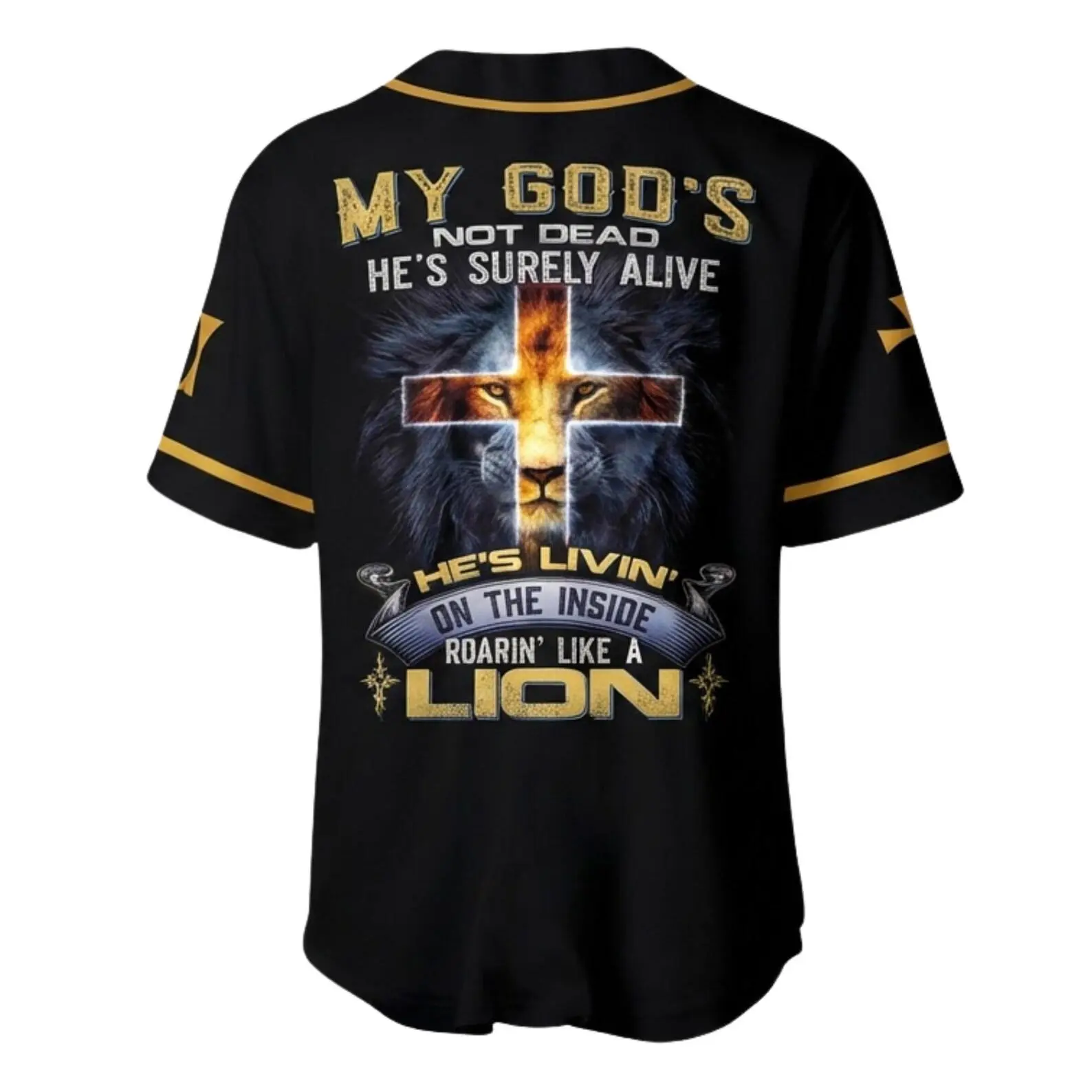 5. Personalized Christian Baseball Jersey – JESUS CHRIST Front Lettering, My God’s Not Dead Lion Cross Back, Custom Name, Unisex Faith Jersey
