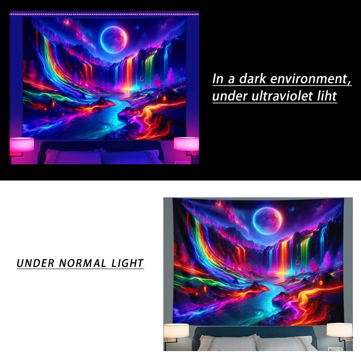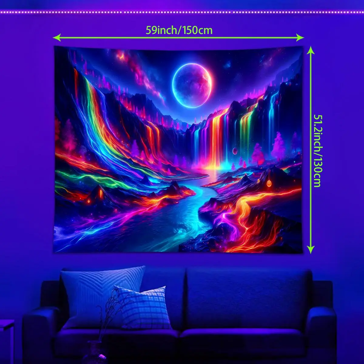 Colorful Waterfall Pattern Tapestry Tapestry, UV Reactive Tapestry, Natural Landscape Wall Hanging, Wall Decoration Art, Tapestry Wall Mural for Home Living Room Bedroom Office