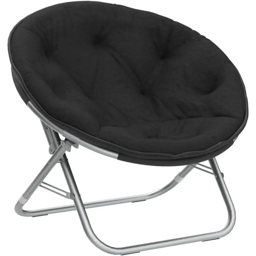 Lifestyle Faux Fur Saucer Chair, Foldable Cozy Accent Chair for Kids, Teens & Adults, Gaming Chair Dorm Chair Bedroom Chair, Metal Frame, Black Faux Fur Seat