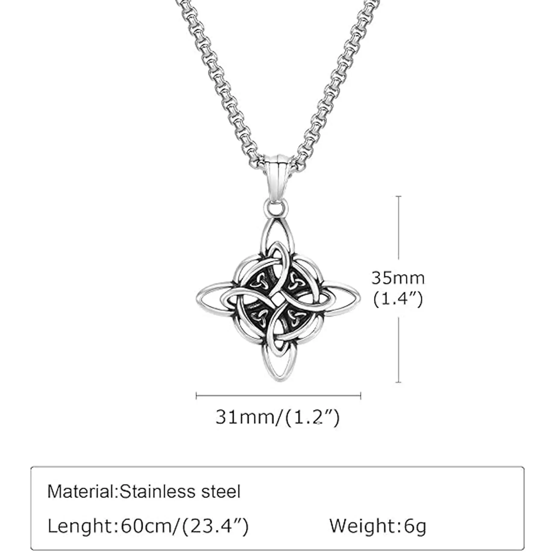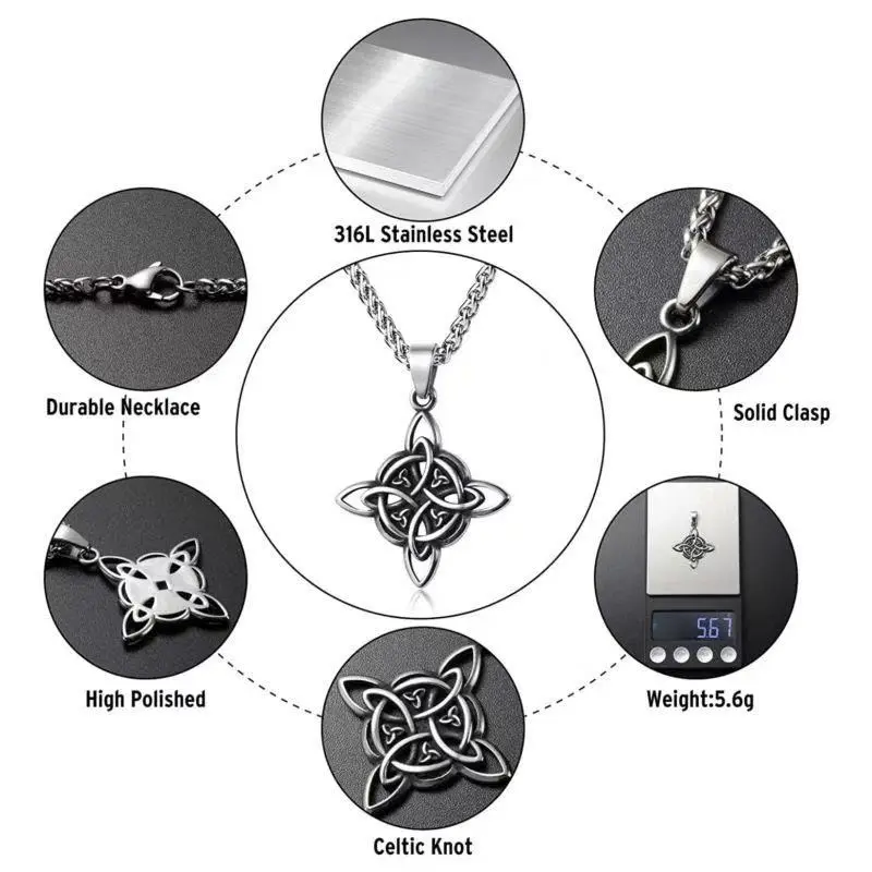 This exquisite Quaternary Celtic Knot necklace features an elegant and harmonious design, symbolizing the four directions — North, South, East, West — or the four seasons.