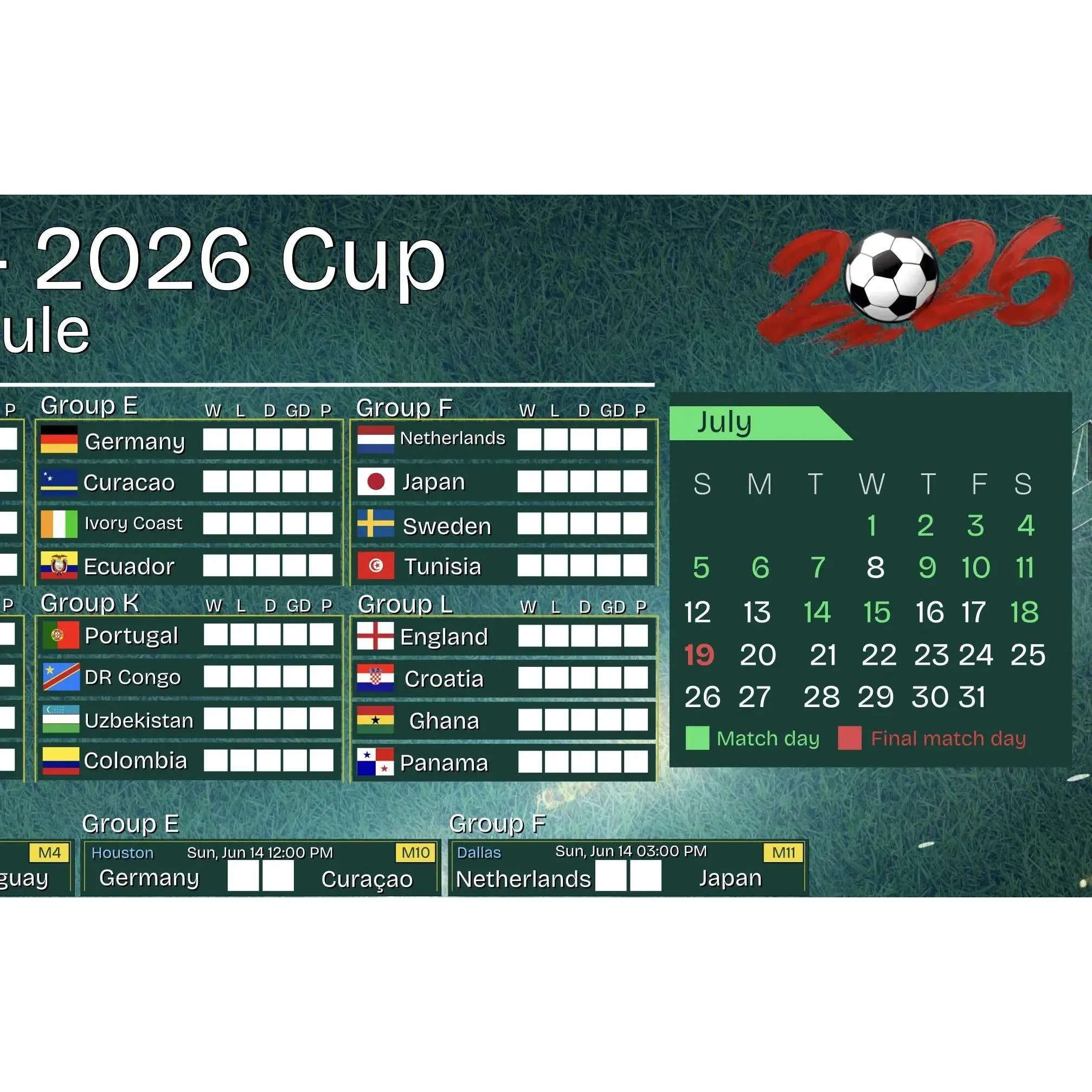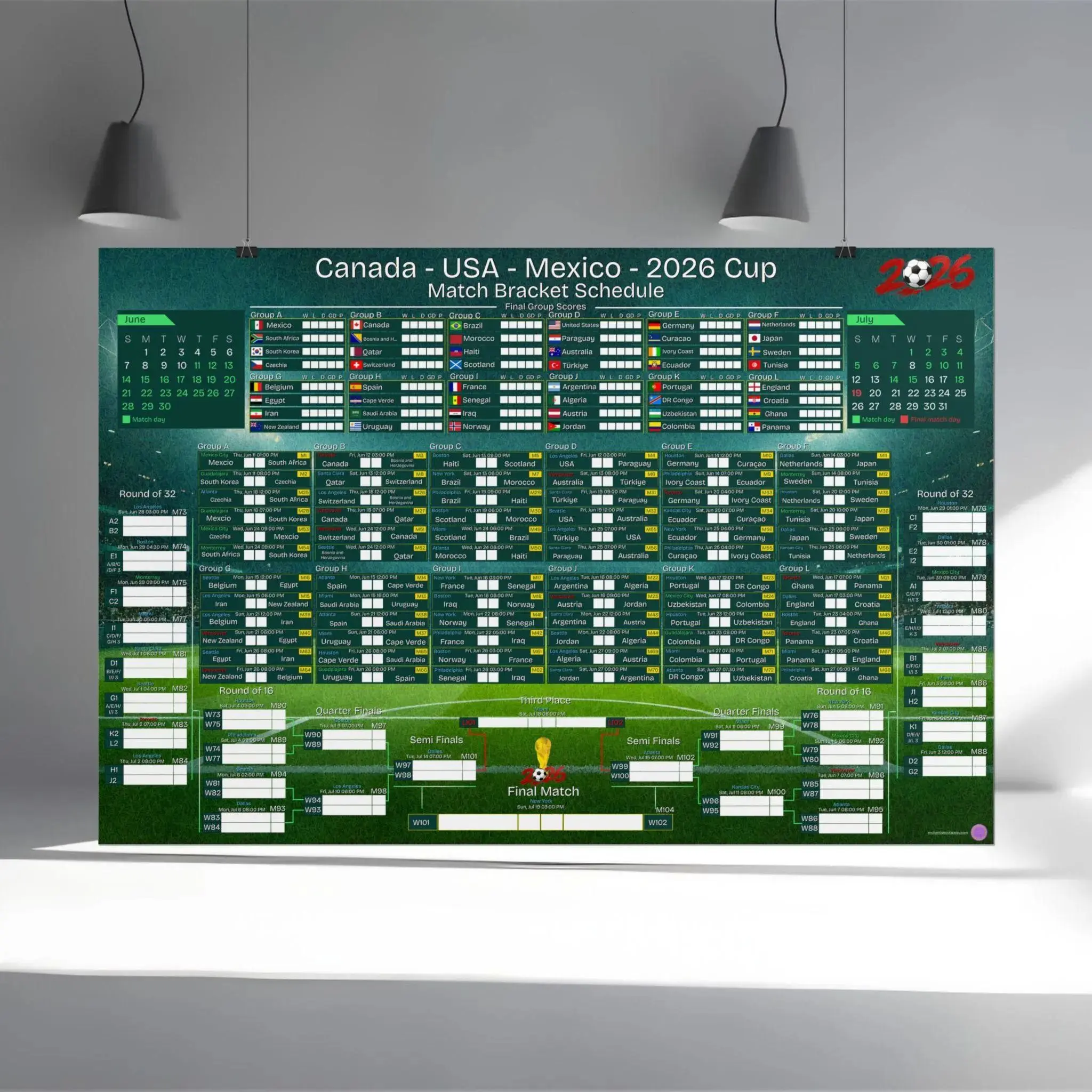 [Sale off up to 65%][Free Ship] World Cup 2026 Match Schedule Poster - Soccer Bracket Wall Art