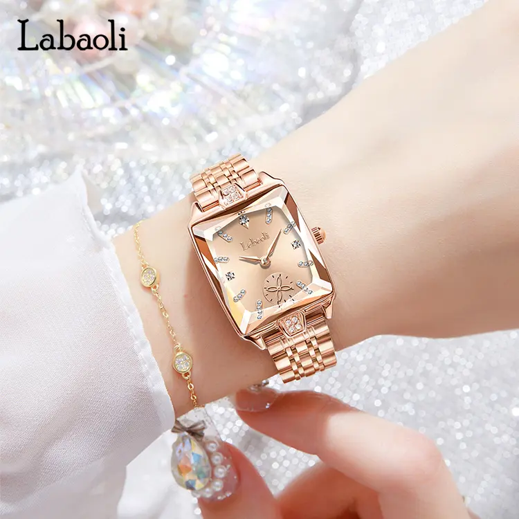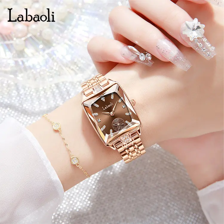Rose gold–plated stainless steel provides both strength and elegance. The prism-cut surfaces reflect light like polished marble, while crystal accents add a refined, lifelike sparkle.