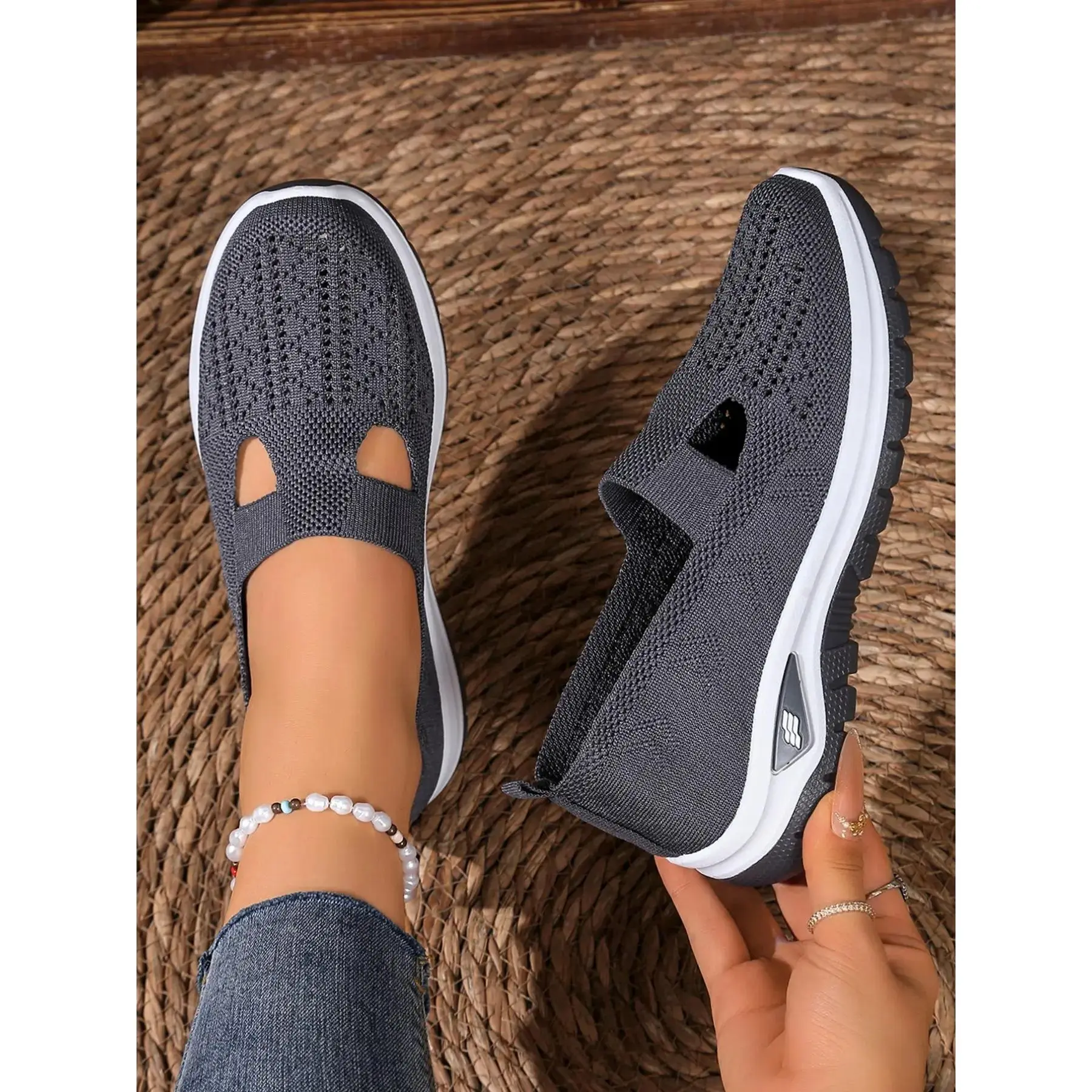 [Breathable Material]: Crafted with a textile upper that allows air circulation, keeping your feet cool and dry during wear.