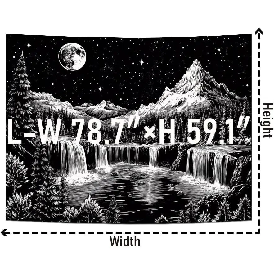 The Starry Night Mountain tapestry is composed of various stunning elements, including an aesthetic moon, enchanting starry sky, and mysterious natural forest scenery, outlining a black and white natural forest scene, making your room the focus, and I believe you will receive a lot of appreciation.