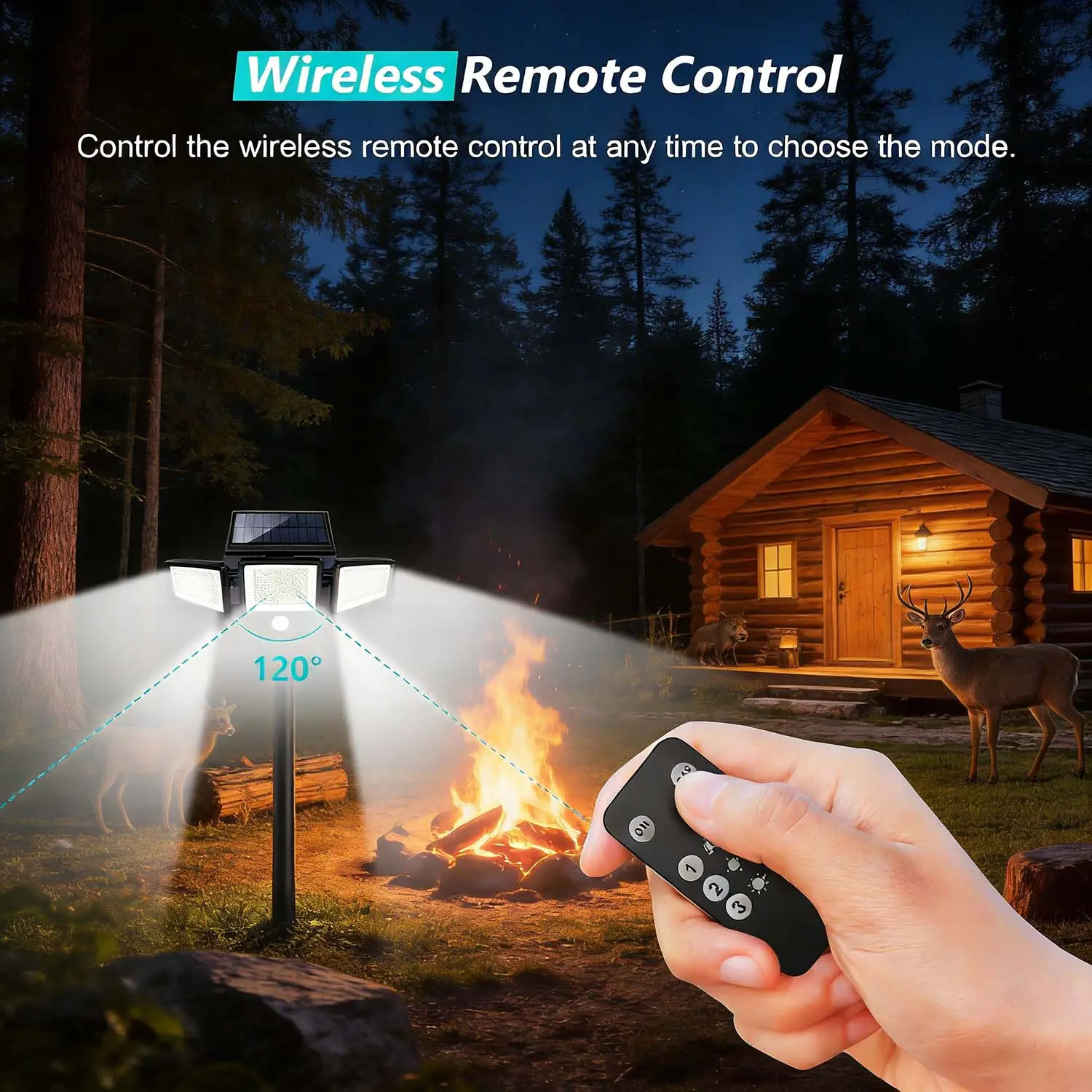 FABSTYL Solar Clip Lights with Motion Sensor,IP65 Waterproof Wireless Security Lighting for Yard, 4-Color Adjustable Outdoor Solar Flashlight with Remote Durable High Lumens 2 Pack
