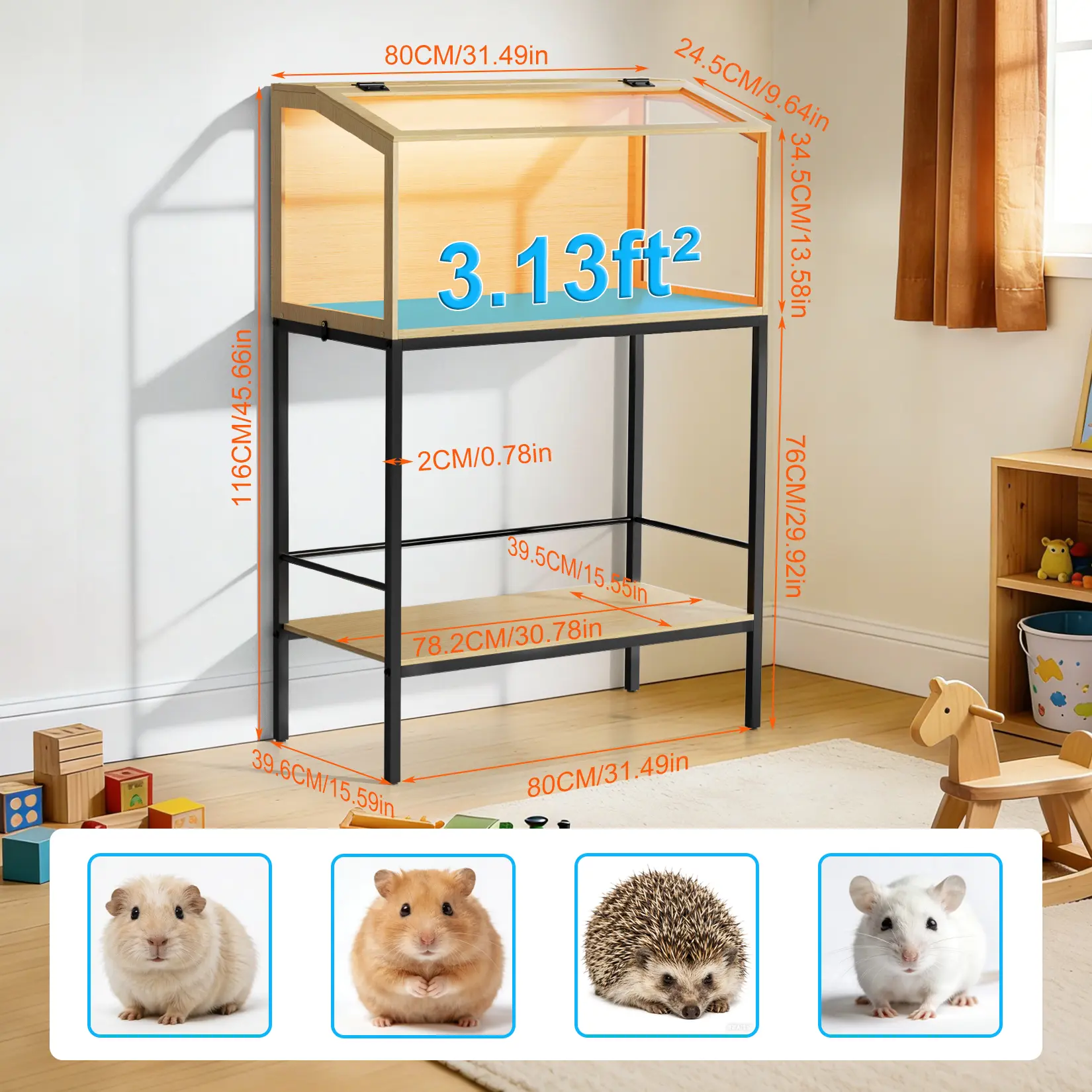 Spacious Modern Design : Standing at a generous 40cm in height, this enclosure fully accommodates deep bedding layers that satisfy your hamster's natural digging and burrowing instincts, while keeping substrate neatly contained without overflow. The expansive interior offers ample room to create dedicated zones for hiding, playing, and sand bathing, allowing you to build a personalized hamster paradise. (Note: Interior decorations and accessories are not included.)