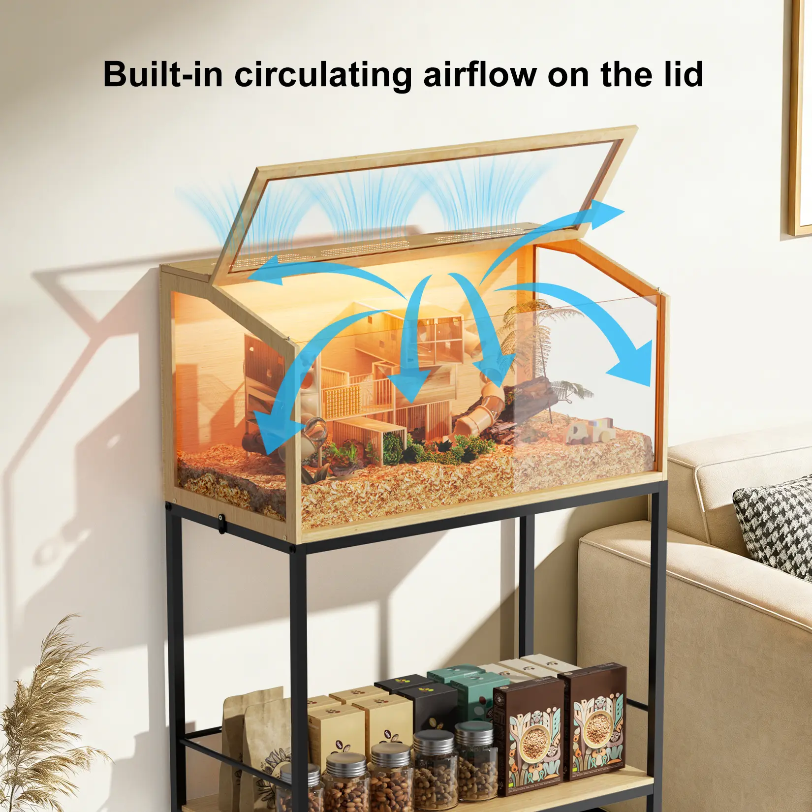Durable Multi-Layer Board Frame : Constructed with dense, hardened multi-layer board that is free from harmful chemicals, ensuring a safe and healthy living environment for your pet. A top-opening observation window provides easy daily access for feeding, bedding changes, and bonding with your hamster, no complicated latches or difficult disassembly required.
