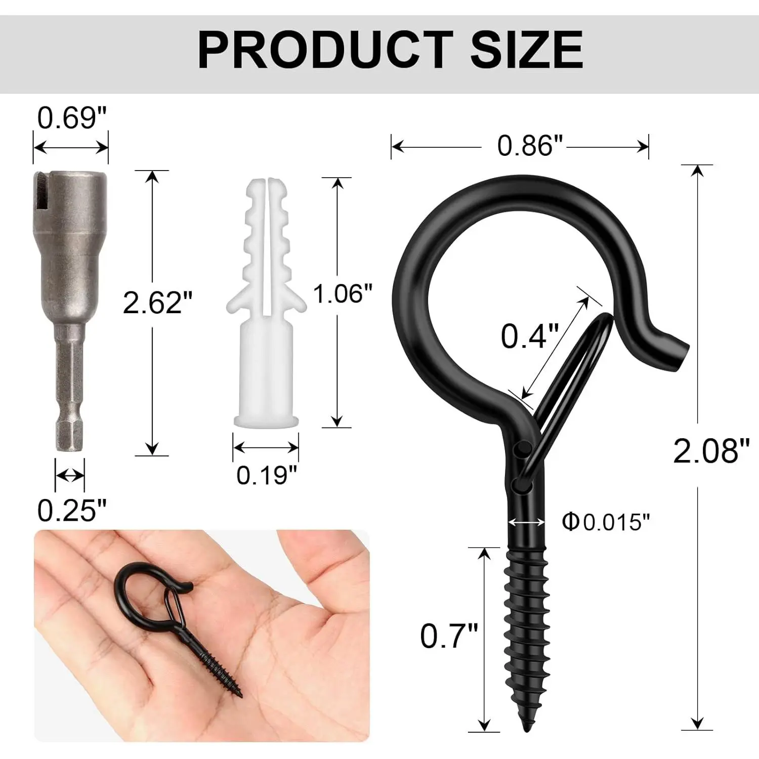 with Safety Buckle, Windproof Screw Hooks for Outdoor String Lights Hanging Christmas Lights, Plants, with 1 Wing Nut Driver
