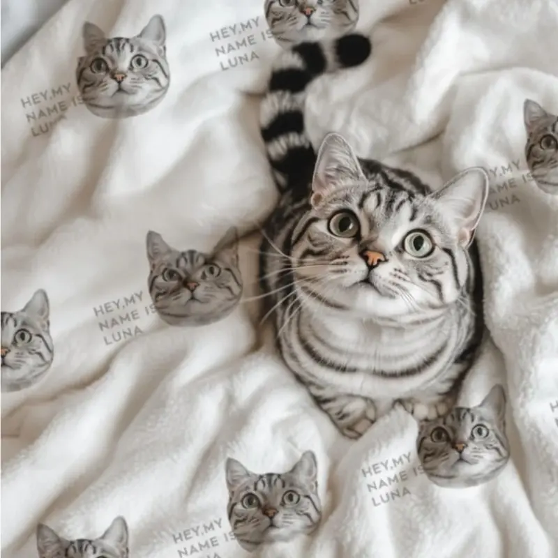 Score big with our best-selling custom pet blankets! Ideal for cuddling, celebrating milestones, or gifting. These blankets are designed to wrap you in love and comfort. Made in USA, ensuring quality and fast shipping. Choose between silky fleece or cozy sherpa for that perfect "hug" feeling. Full photo customization allows you to print your pet's photo, name, special date, or heartfelt message. Perfect for dog parents, cat lovers, and all pet enthusiasts.