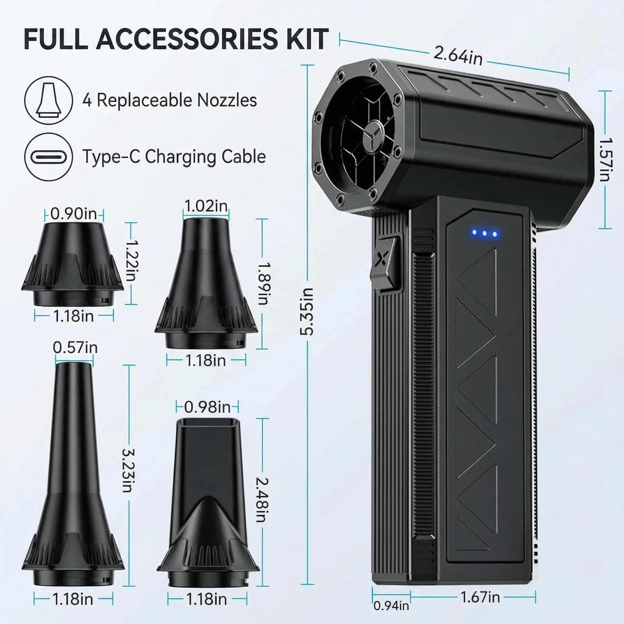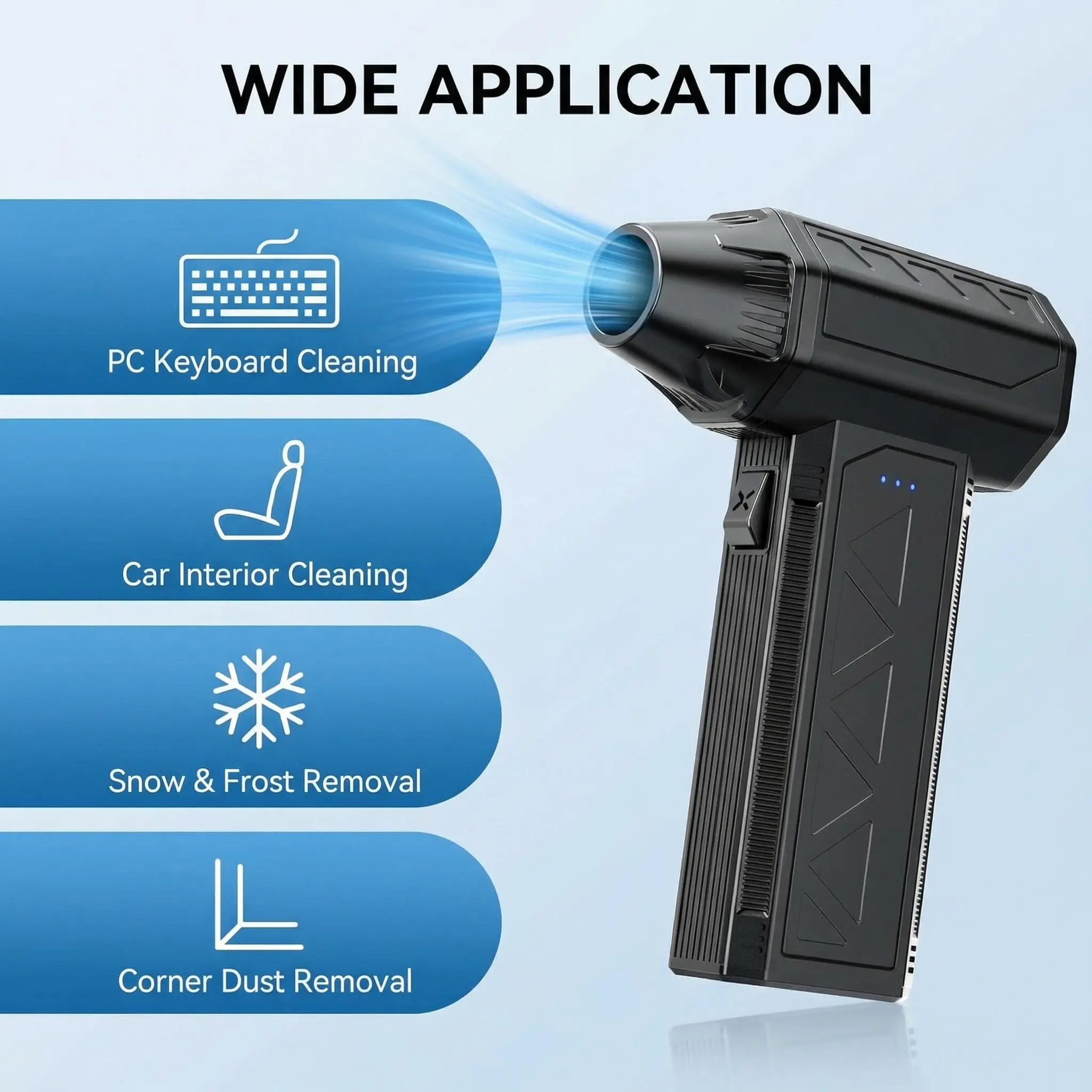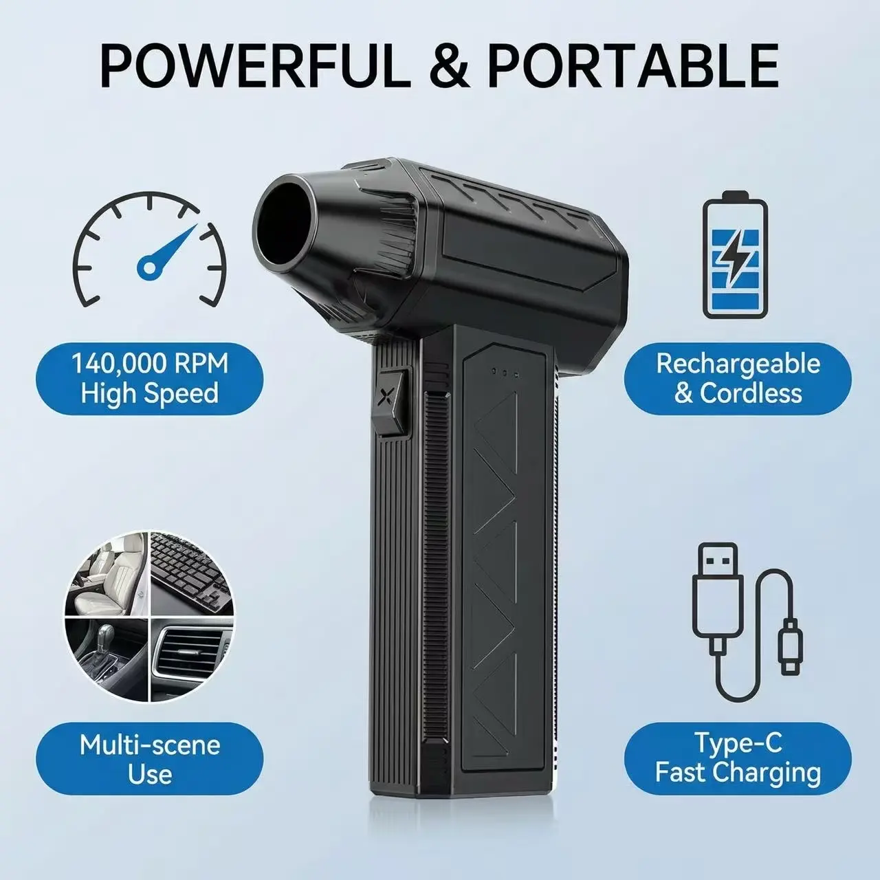 Powerful Turbo Fan 140,000 RPM Mini Portable Jet Fan Compressed Air Duster Keyboard Cleaner Type-C Rechargeable Handheld Blower for Cars PCs Snow Removal with 3-Speed Settings