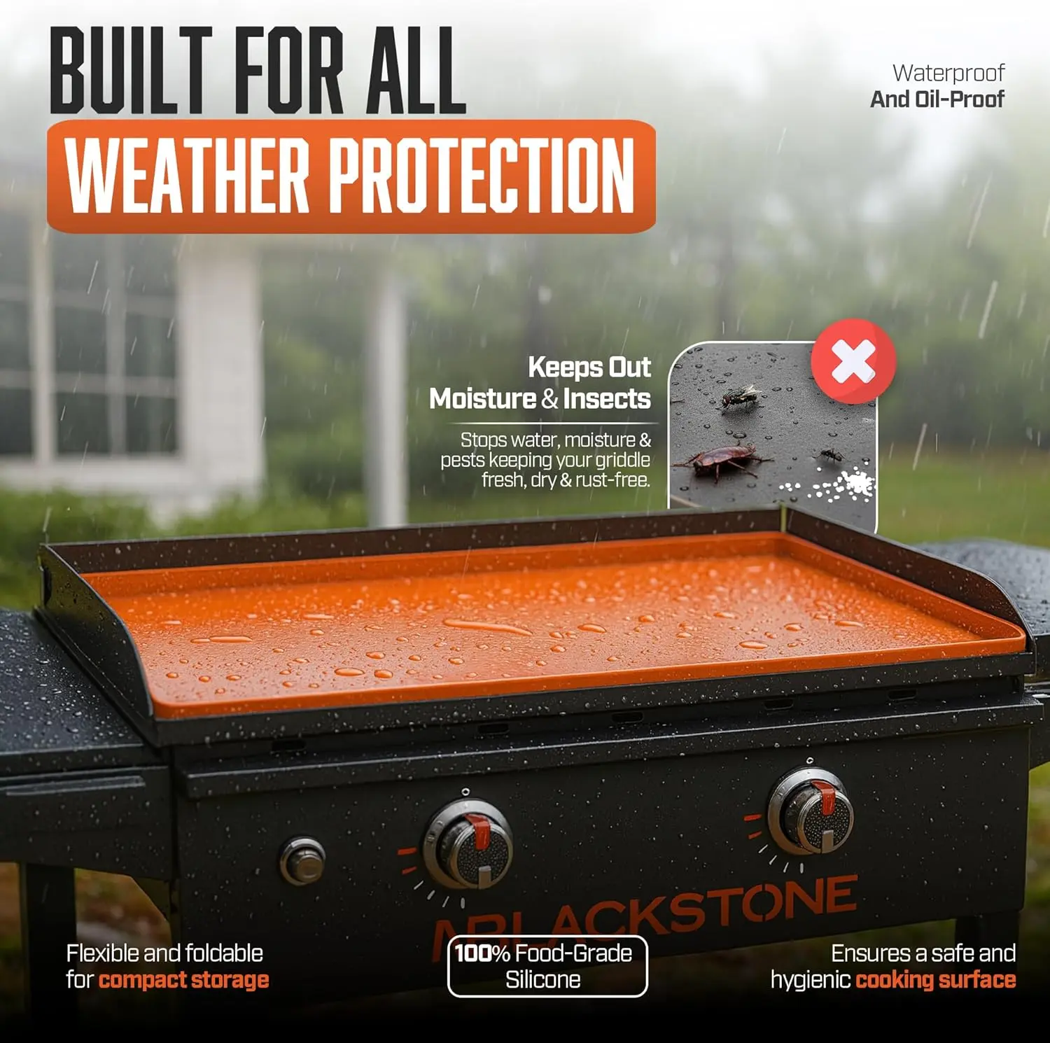 ·【Strong Silicone That Protects Daily】Built with heavy, food-grade silicone, this mat gives your griddle dependable everyday protection. It blocks moisture, pollen, rust-causing buildup, small critters, and debris so your cooking surface stays smooth and in great shape. A simple cover that saves you time, frustration, and cleanup