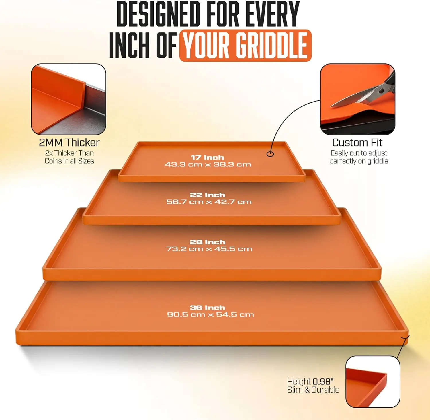 ·【Edge-to-Edge Protection】Made in the right sizes for popular 36", 28", 22", and 17" griddles, this mat lays flat and hugs the surface so nothing slips underneath. It keeps your griddle covered from corner to corner, helping you avoid dust, dirt, bugs, and outdoor mess that can build up when the grill isn’t in use