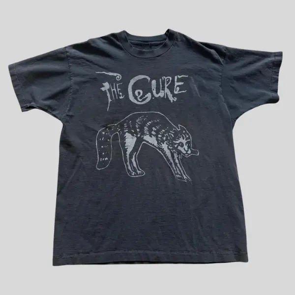 5. The Cure Rare Cat Artwork Shirt, Vintage 80s Goth Rock Band Tee, Retro Dark Aesthetic Unisex Black T-Shirt