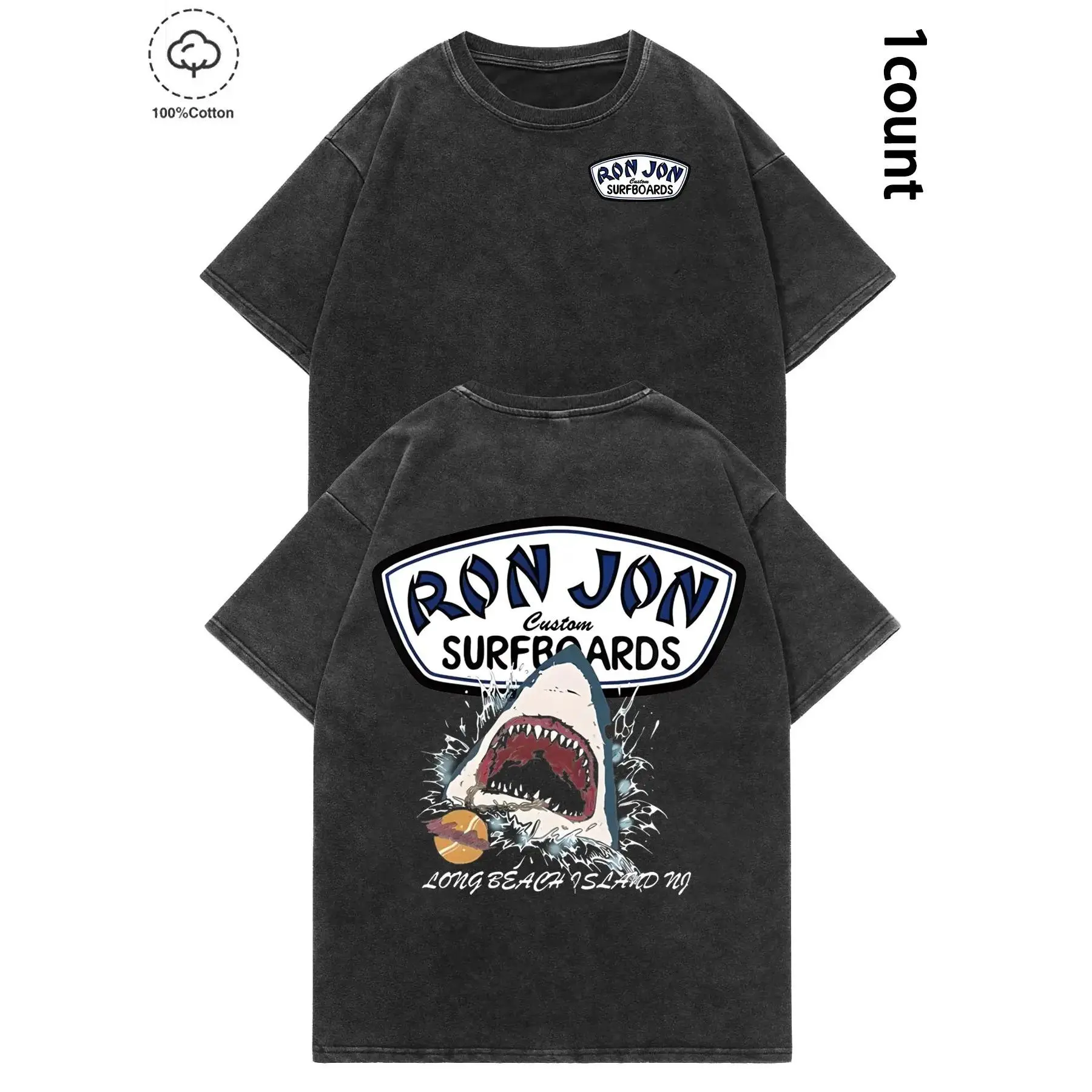 Unisex Ron Jon Surfboards Shark Graphic Washed Tee | 100% Premium Cotton | Oversized Relaxed Fit | Retro Beach Surf Aesthetic | Y2K Casual Streetwear | Trendy Summer Vacation Top gift shirts men clothing tv show white soulja boy outfit