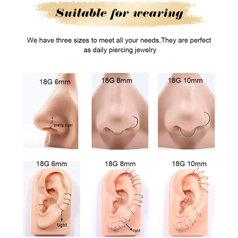 These 20G nose piercing jewelry for women can be as earring hoops, lip rings, cartilage earrings, septum rings, nose pin studs and other more body jewelry.You can wear these nose rings surgical steel to attend different occasions, such as birthday party, graduation ceremony, masquerade and any other occasions.