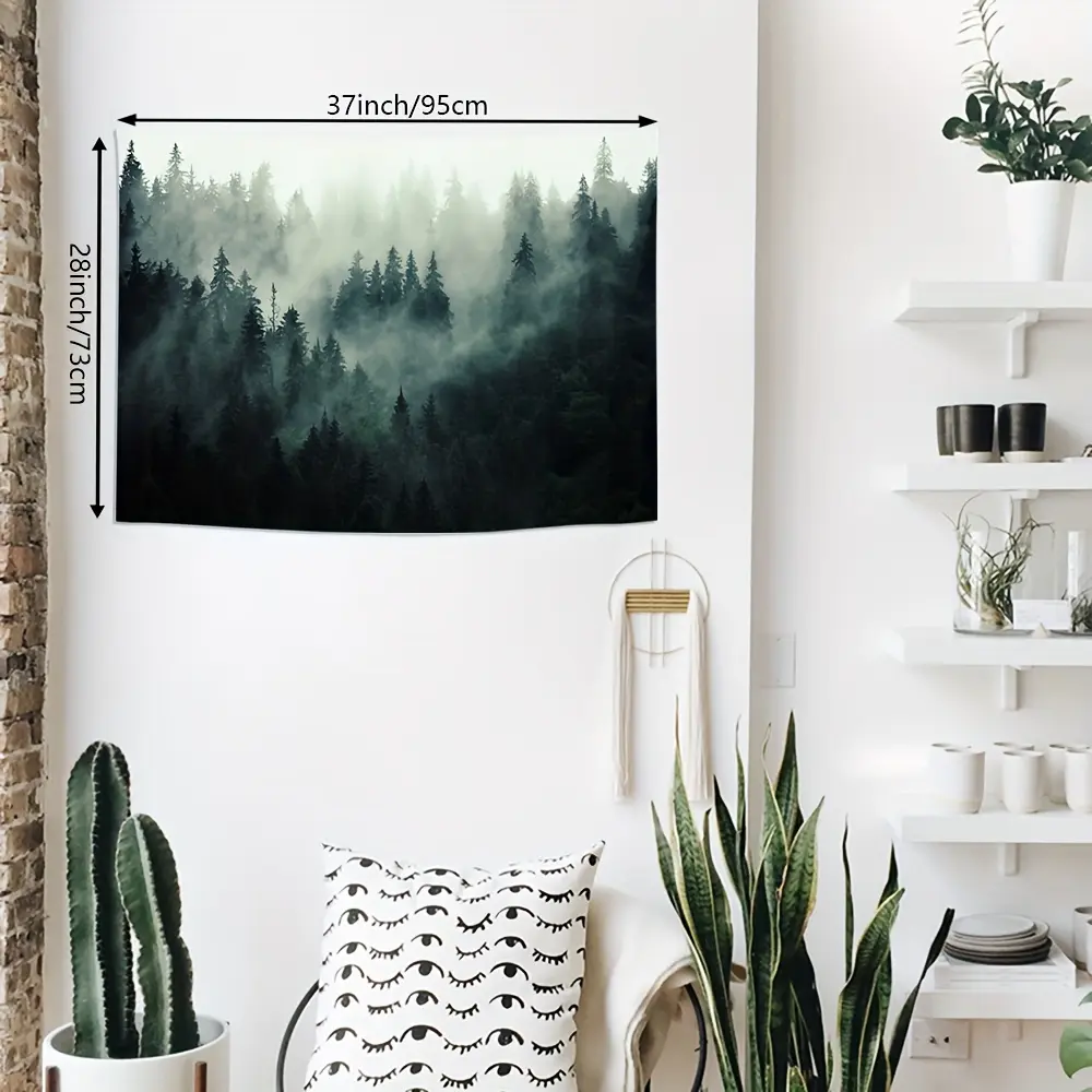 1Pc Misty Forest Wall Hanging Tapestry, Durable Decorative Tapestry - Natural Fog Tree Polyester Backed, Wall Mounted home, office - Harmonious Mountain View with Pine and Rolling Hills, Interior Decor, Party Decor, Free Installation