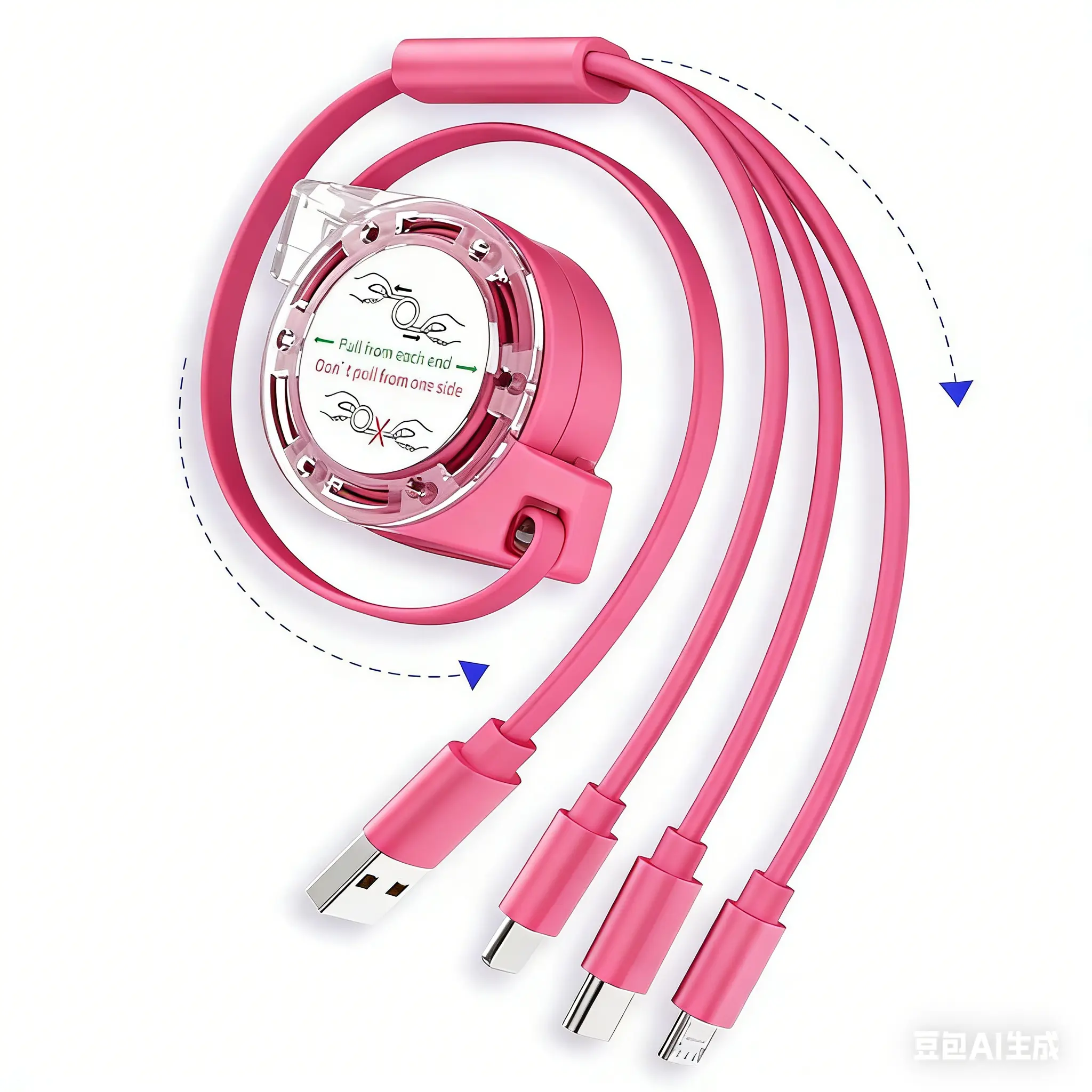 Pink Clear Sparkly Charging Cable 3-in-1 Heart Diamond Crystal Girly Car Accessory Fast Charge Phone Charger Cute Viral Gift for Her