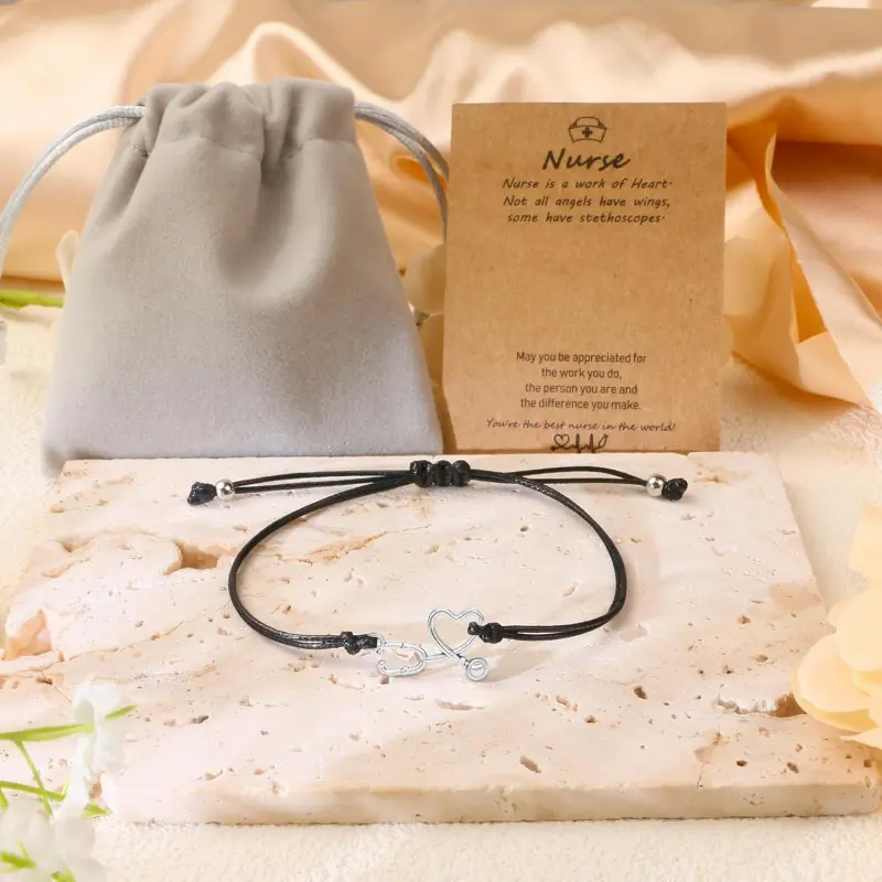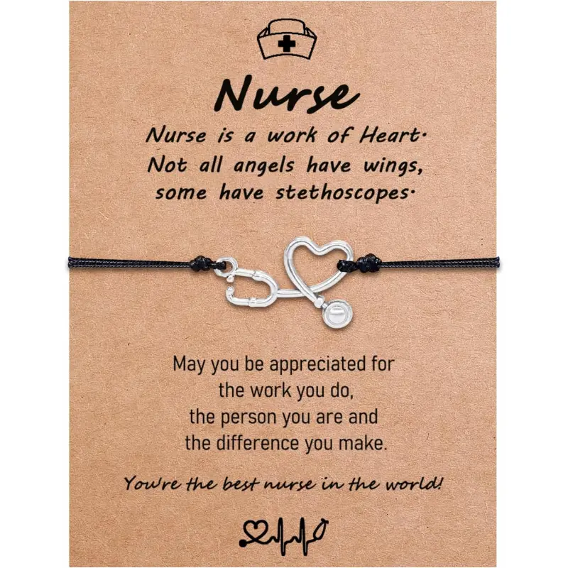 Nursing Gifts: The nurse's bracelet is a combination of a stethoscope and a heart charm, symbolizing her dedication to patients and the blessings and gratitude people have for her. In people's hearts, she is an angel with a stethoscope, signifying that all her work and efforts will be appreciated and valued. Nurse Appreciation Gifts: The unisex bracelets are safe to wear and adjustable up to 9 inches, suitable for most teenagers and adults. Each bracelet has an adjustable knot for a perfect fit and is made of high-quality stainless steel that is hypoallergenic, lead-free, nickel-free, and colorfast. Gifts for Nurses Female: This gift is the ideal nurse christmas gifts for your daughter, son, niece, nephew, granddaughter, grandchild or friend who is a nurse or studying nursing. This is a thoughtful and unique way to express your congratulations for their achievements. We are confident that this special gift will accompany them in their future endeavors. Perfect RN Gifts for Nurses: This nurse bracelet comes with a velvet pouch and a blessing card, so you don't have to repackage it. t looks beautiful and is the perfect gift to celebrate nurses' achievements in 2025, filled with hopes and blessings for her in the coming years! Customer Service: Hey, , smile your way. Your satisfaction is utmost important for our brand. If you have any questions about nurse bracelet at anytime, please let us know.