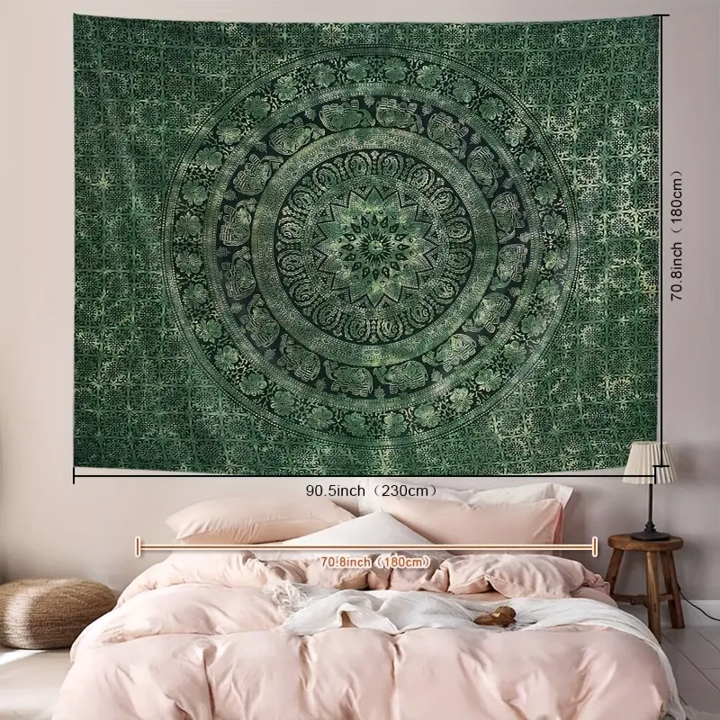 1Pc Bohemian Mandala Printed Tapestry, Boho Floral Design, Polyester Tapestry, Tapestry Wall Mural, Wall Hanging Living Room Bedroom Office, Home Decoration Room Decoration Party Decoration, with Free Installation Package