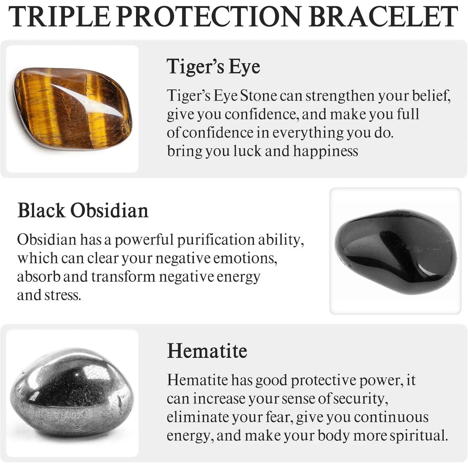 Name: obsidian bracelet,tigers eye,black obsidian bracelet,black obsidian,tiger eye bracelet men,black tourmaline bracelet,triple protection bracelet,protection bracelet,crystal bracelet,protection bracelets for men,black tourmaline bracelet for men,mens tiger eye bracelet,obsidian bracelet Material: Tigers Eye, Black Obsidian, Hematite Bead Size: 8mm Suitable for: Women and Men