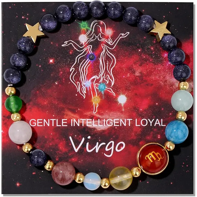 ✨ Zodiac Braceletsfor women and men, featuring 12 constellations.Each constellation has unique birthstones like Labradorite, Blue jade, Red agate, Yellow tiger eye, Rose crystal, Blue Imperial Jasper, Opal, Green aventurine, and White jade.These stones offer healing effects and protection.Wearing this bracelet connects you to the stars.