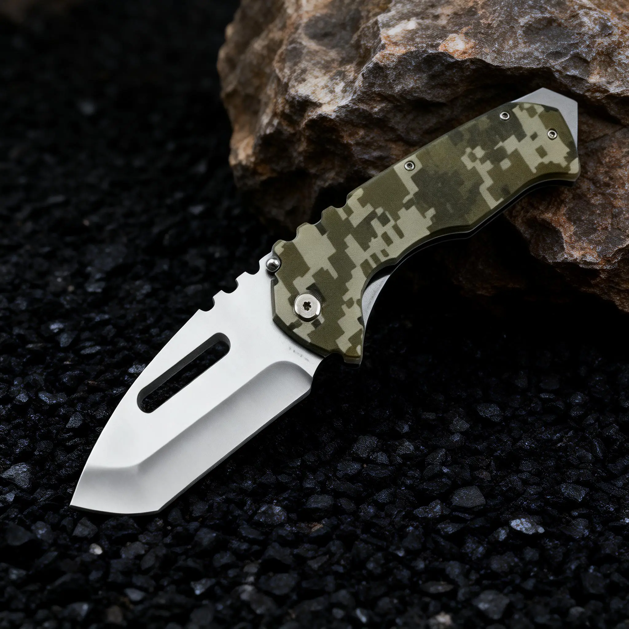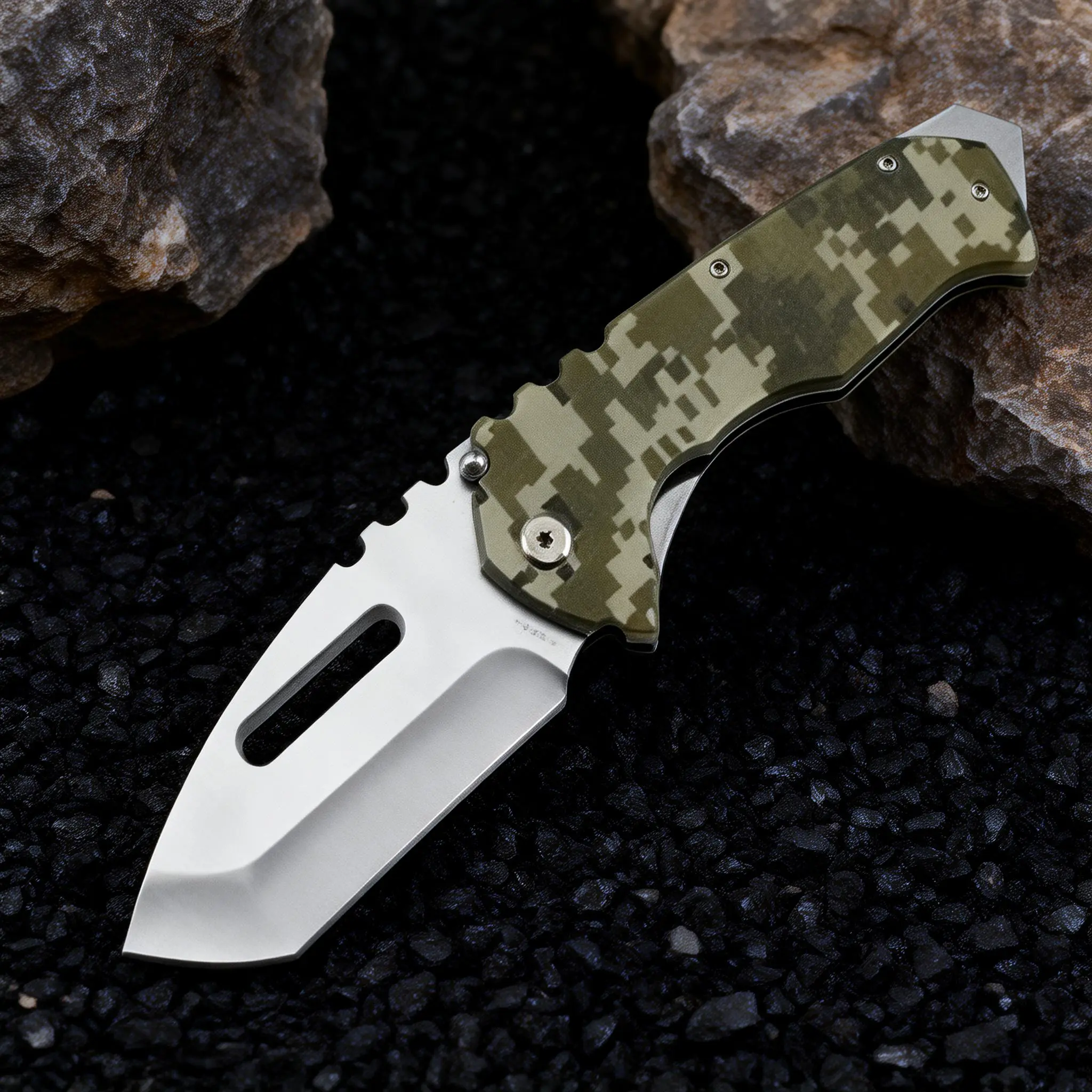 ·Handle: Camo G10 handle for durability and comfort.