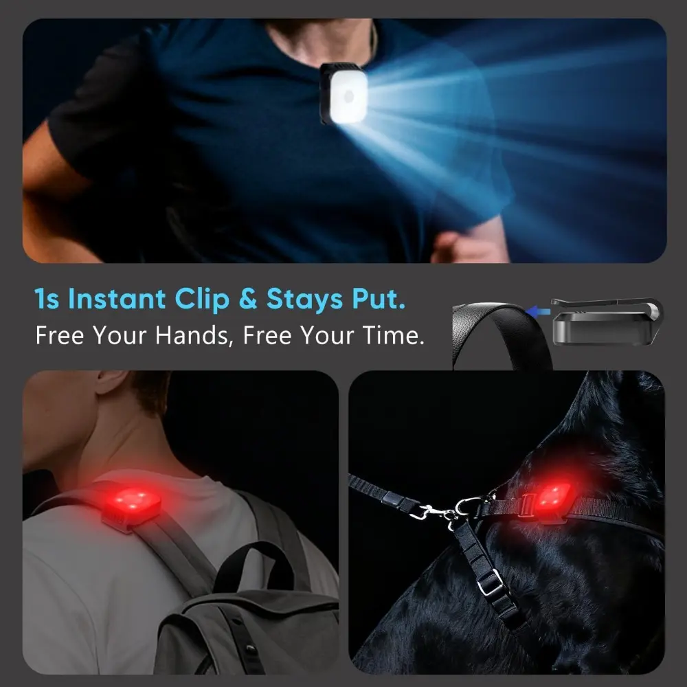 ·4 Light Modes: Switch between four distinct modes - high/low white beam to illuminate your path, plus Red/Red-Green flashing modes for emergency visibility. This clip-on flashlight is designed to be your guardian on every adventure, providing adaptable and secure lighting for nighttime activities on both city streets and park trails.