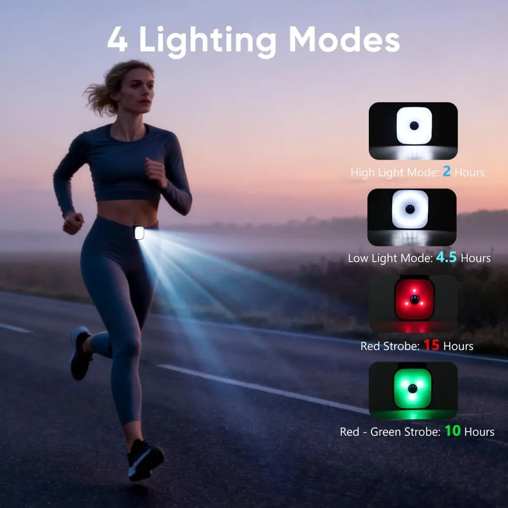 ·Quick Charging & Long Battery Life: Powered by a large 400mAh battery, this running light offers up to 2 hours of runtime at high brightness and 15 hours in red flashing mode. With the included USB charging cable, it can be fully charged in just one hour, extending your usage time and eliminating range anxiety.