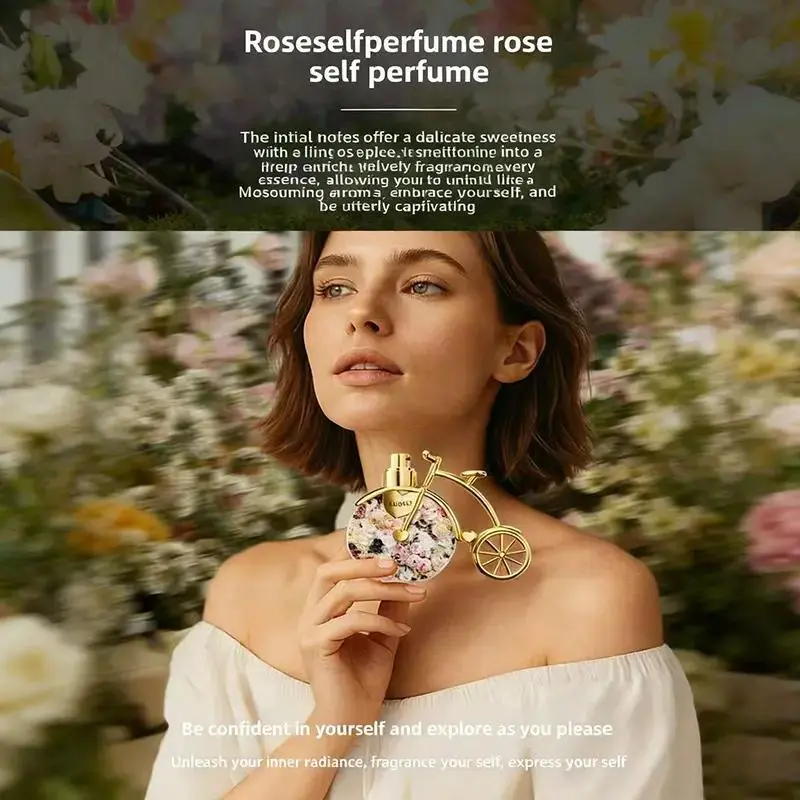 Discover the Deold Bicycle Design Rose Perfume, a captivating Eau de Parfum for women. This fragrance blends fruity, floral, and woody notes, creating a unique olfactory experience. Perfect for those who appreciate a blend of natural and earthy scents. Ideal for everyday use, this perfume adds a touch of elegance to any outfit.