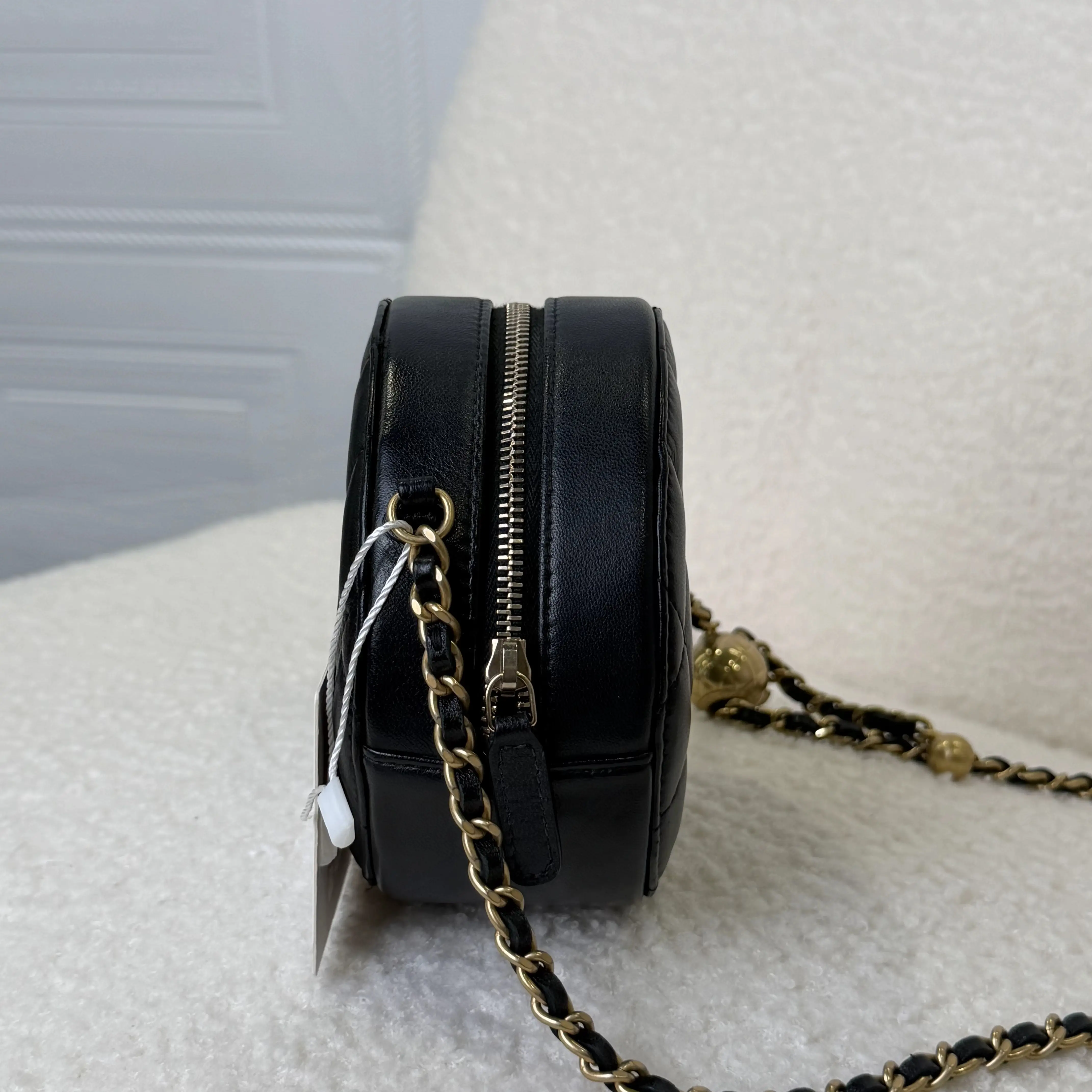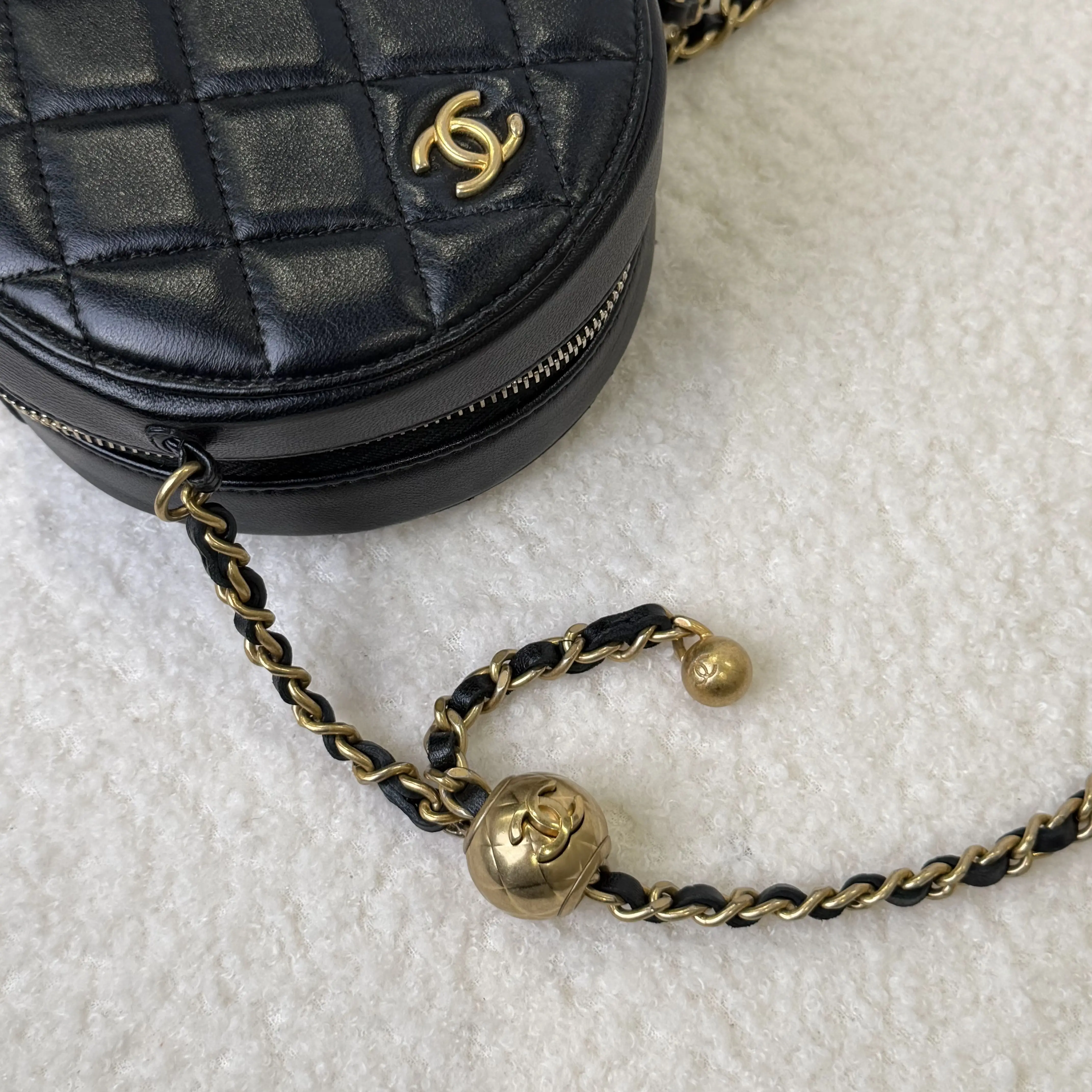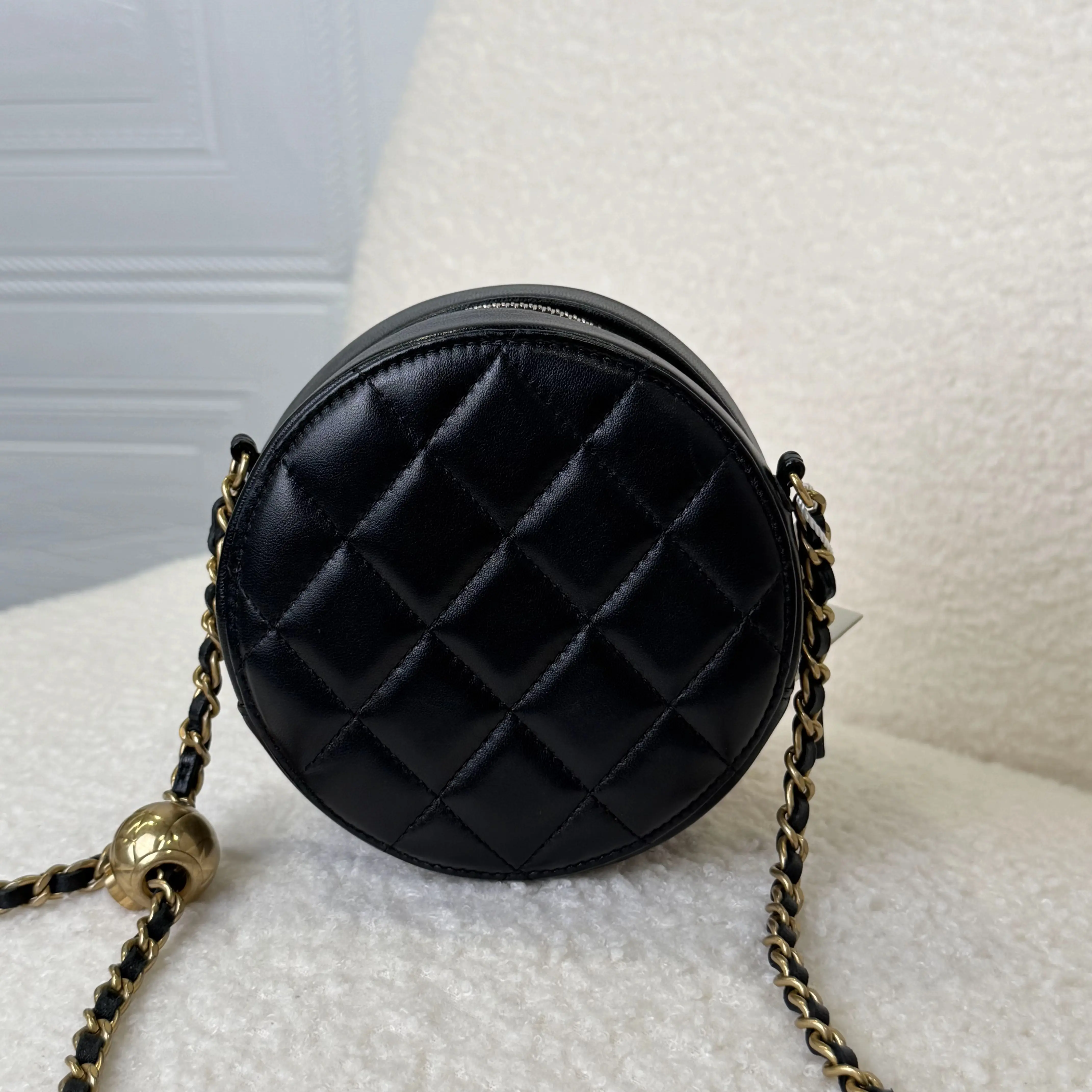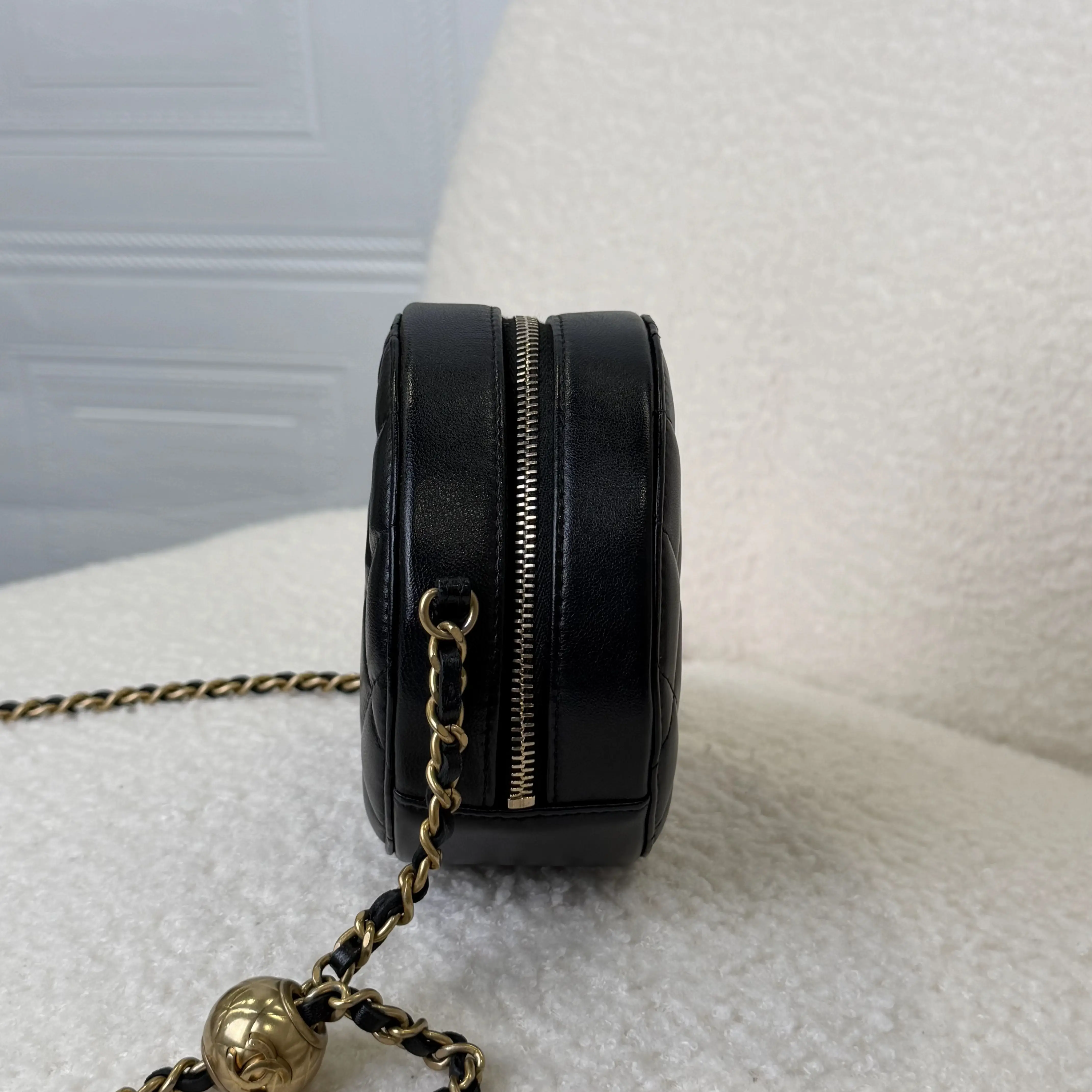 Pre-owned CHANEL Round Mini Flap Bag with Gold Ball Detail in Black Lambskin with Gold Hardware, 2019–2020 16