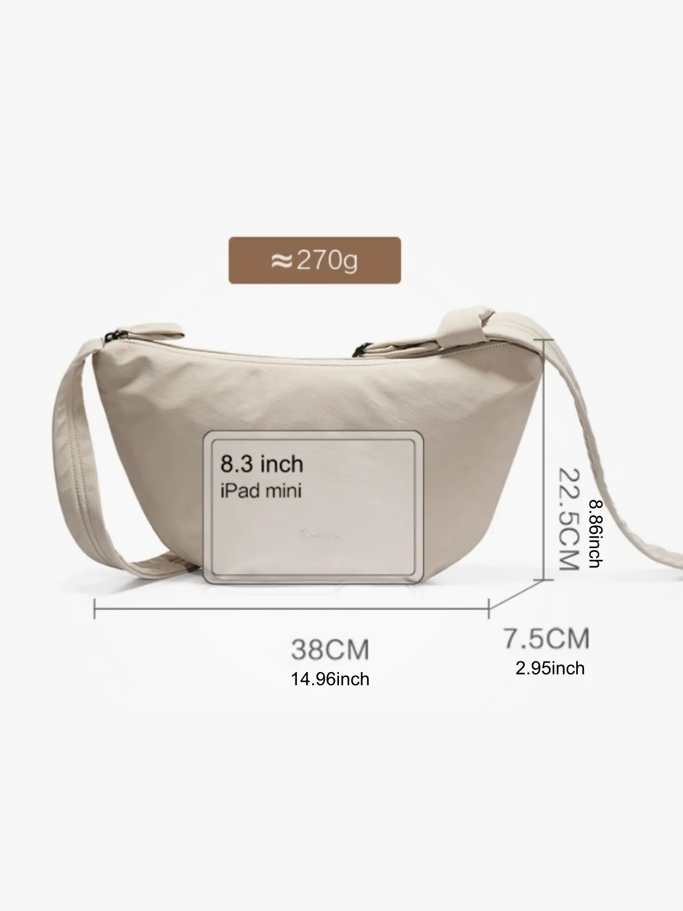 OIWAS Half Moon Foldable Tote Bag, Multi-Pocket Zipper Crossbody Bag, Casual Commuter Sports Messenger Bag, Ideal for Spring Summer