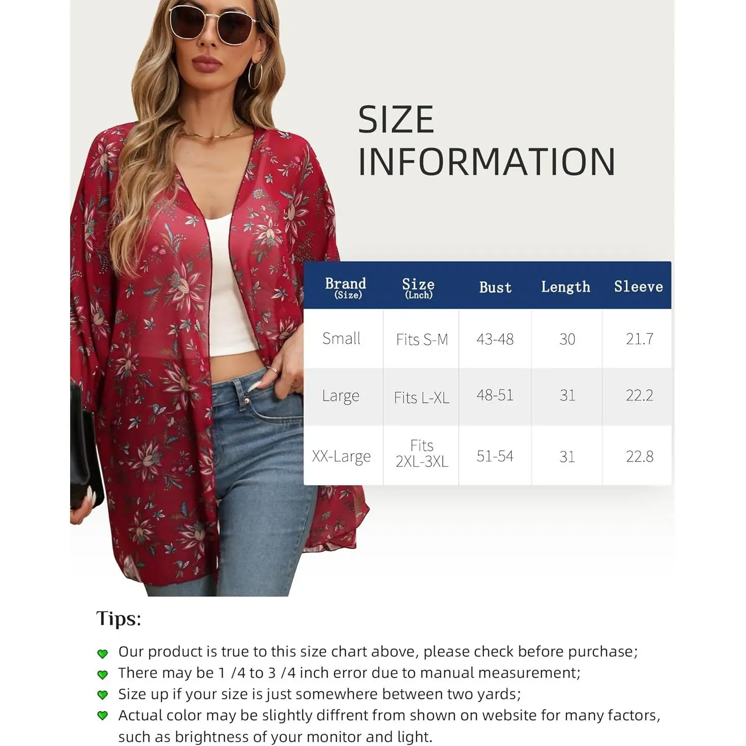 ·What is the fabric like?Is it soft or hard?The kimono is made of 95% polyester and 5% spandex chiffon.It feels light and breathable.Some customers have pointed out that it may feel a bit stiff when taken out of the packaging, but it becomes very soft after the first wash