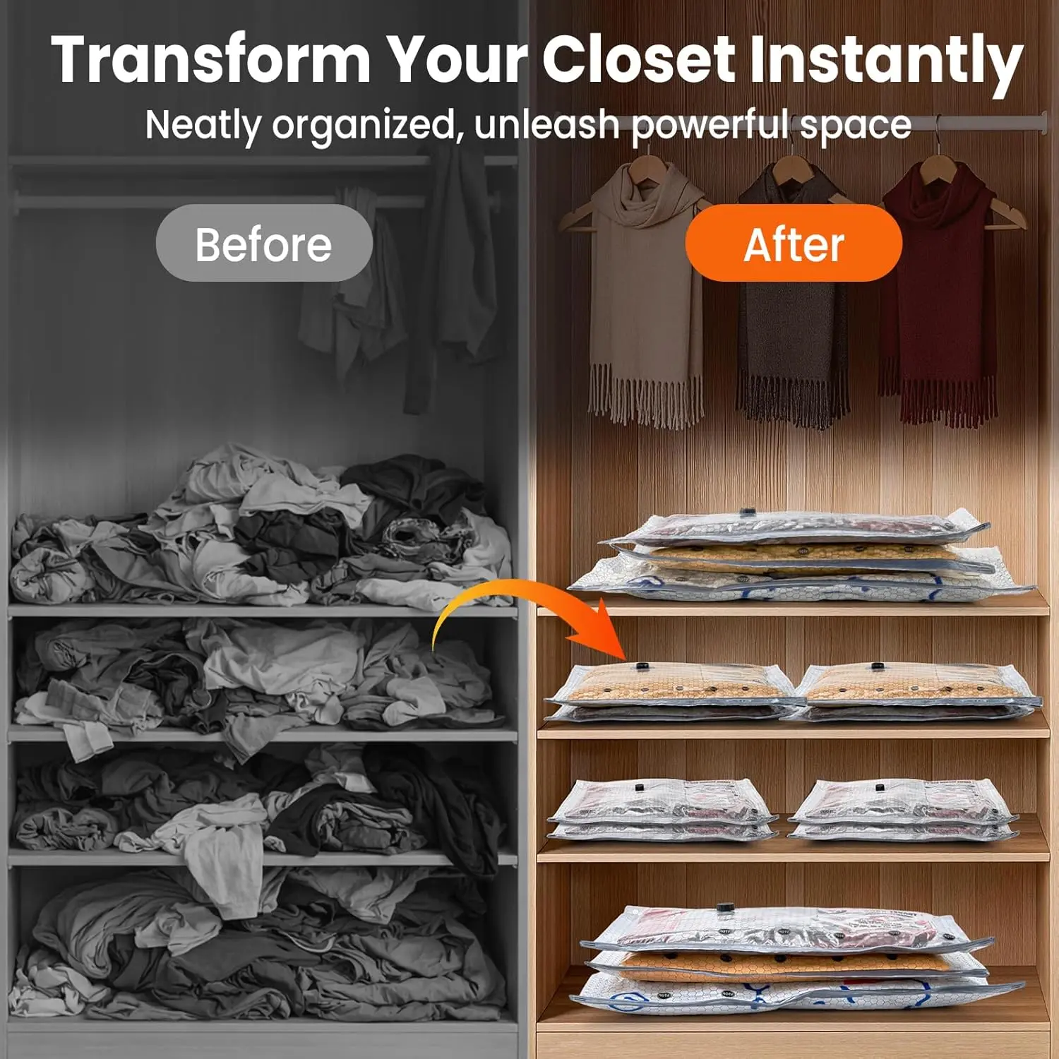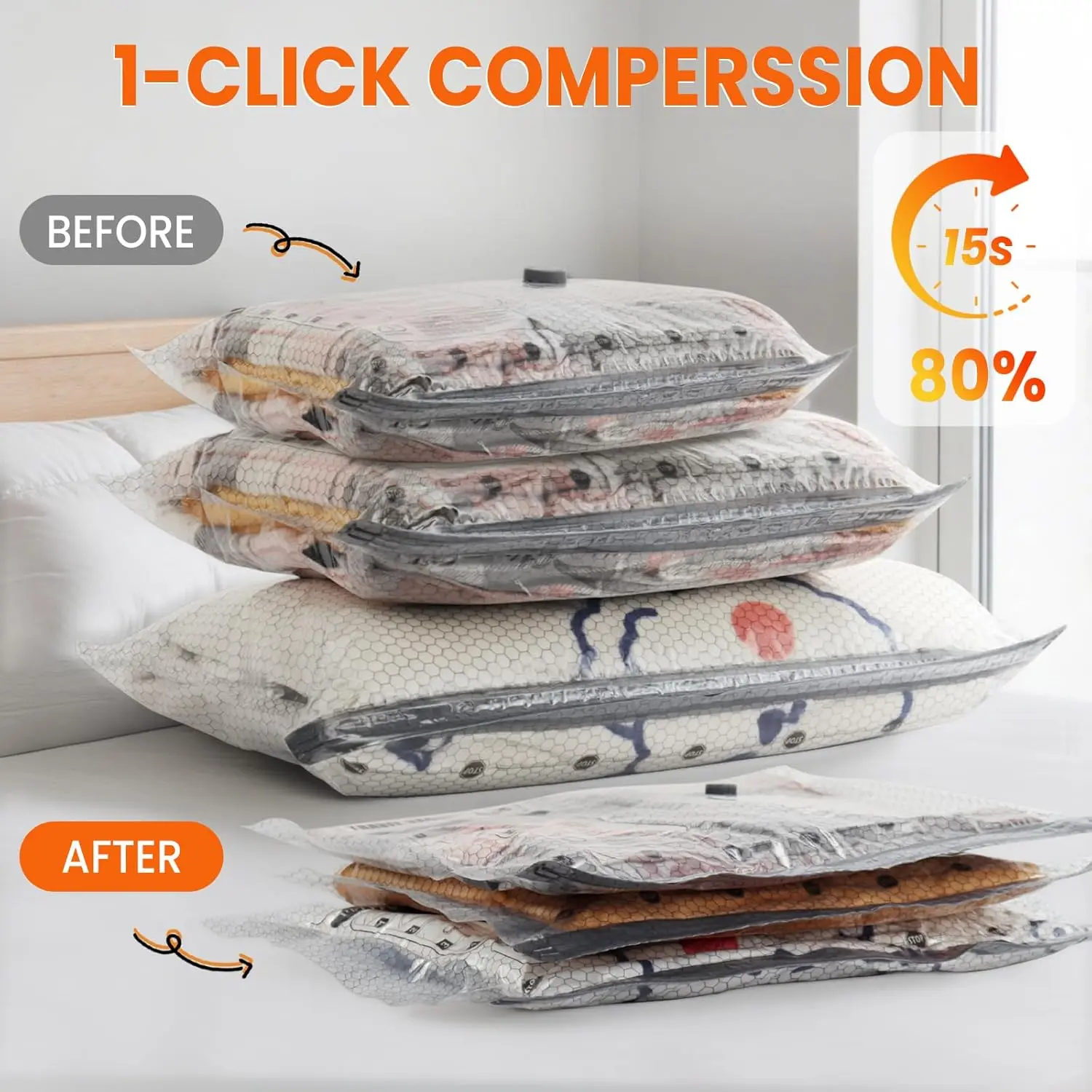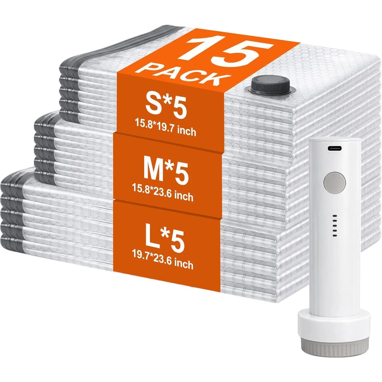 Vacuum Storage Bags for Travel, 15 Pack Vacuum Seal Bags for Clothing With Cordless Electric Pump, Space Saver Bags for Luggage, Clothes, Ideal for Home, Seasonal Storage, and Packing for Travel