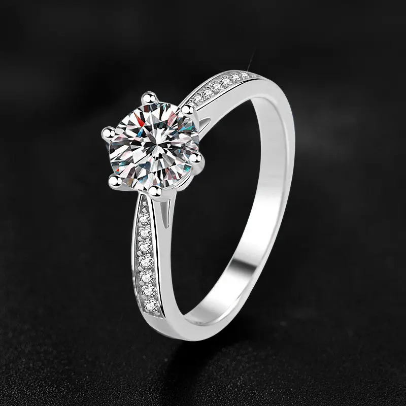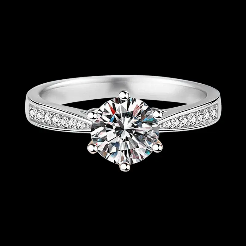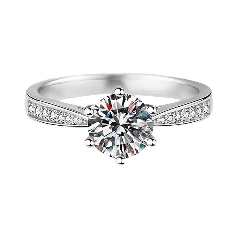 Eight-heart and eight-arrow imitation Moissanite one-carat ring, women's six-prong wedding ring, open diamond ring, light luxury