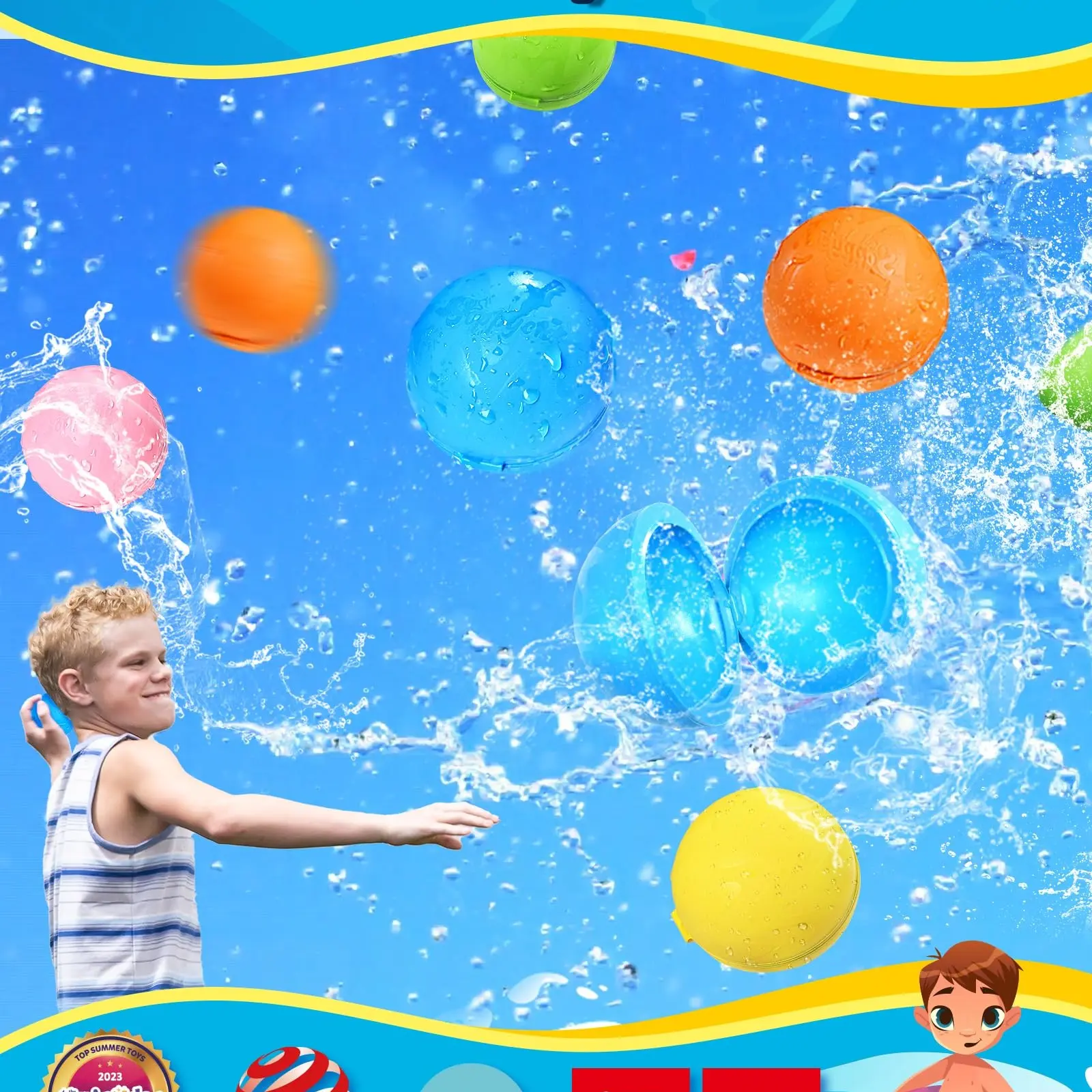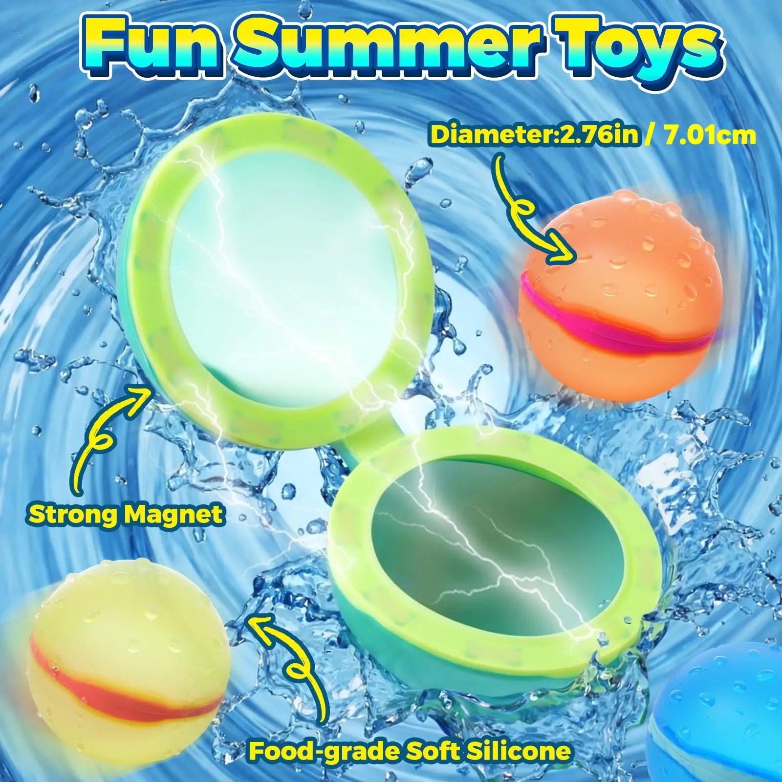 5. 12-Pack Reusable Water Balloons, Pool Water Fight, Magnetic Water Balls, Kids Summer Fun Toy, Beach Family Playset, Ages 3-12, Random Colors