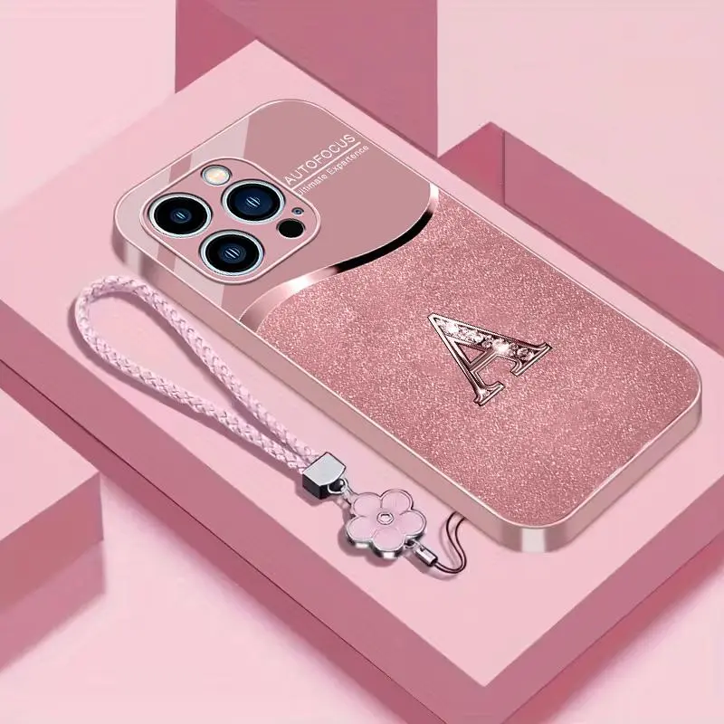 Luxury Pink Phone Case with Lanyard Initial Letter A-Z Cover for iPhone 15 Pro Max --975