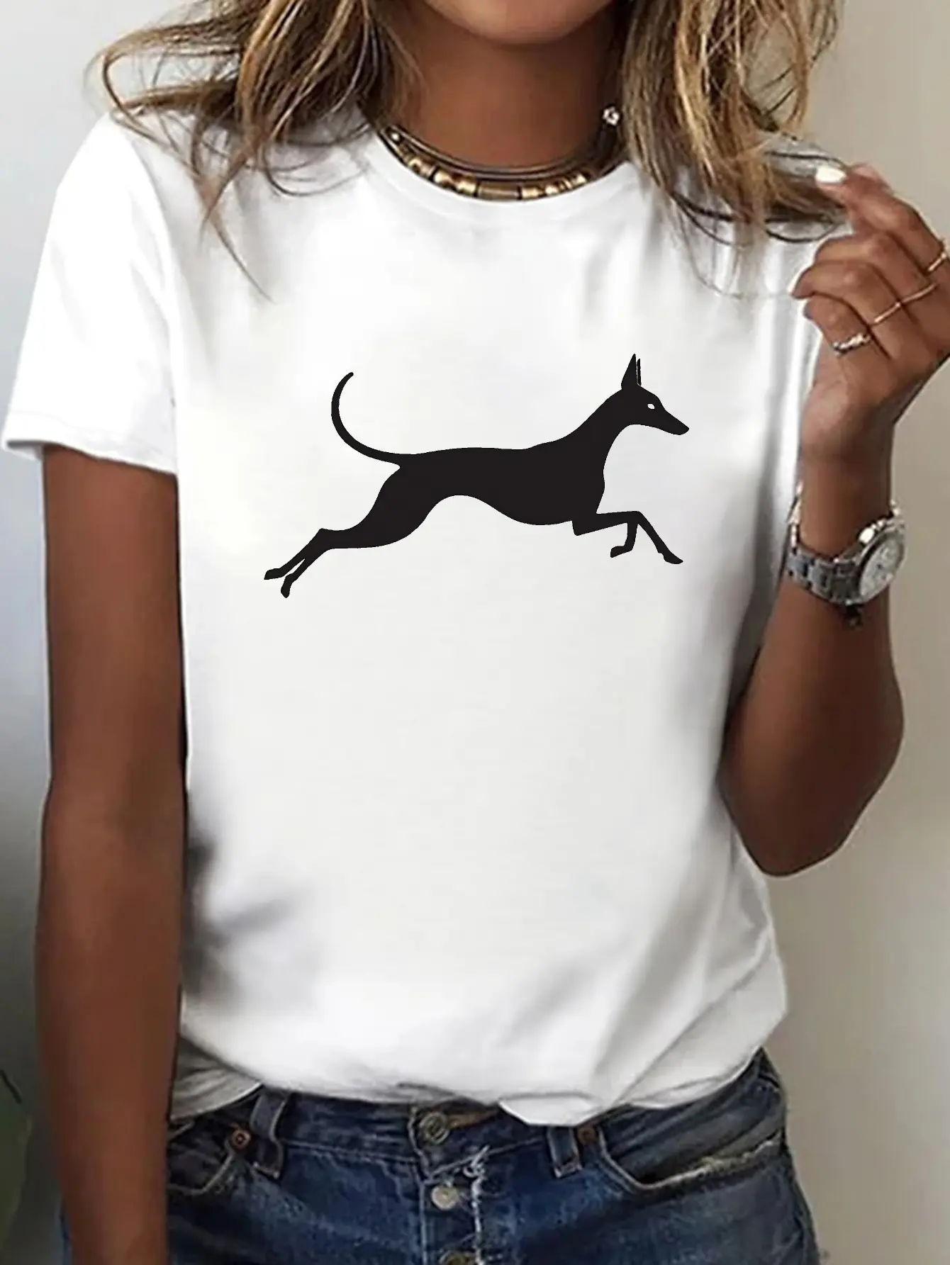 5. Women'S Greyhound Dog Print T-Shirt - Short Sleeve Crew Neck Casual Top With Greyhound Design, Greyhound Breed Lover Apparel, - Comfortable Wear For Spring & Summer Outfits, Machine Washable Pet-Themed Clothing