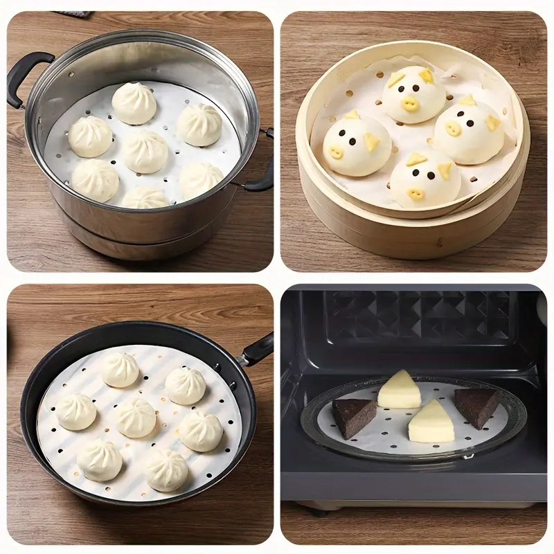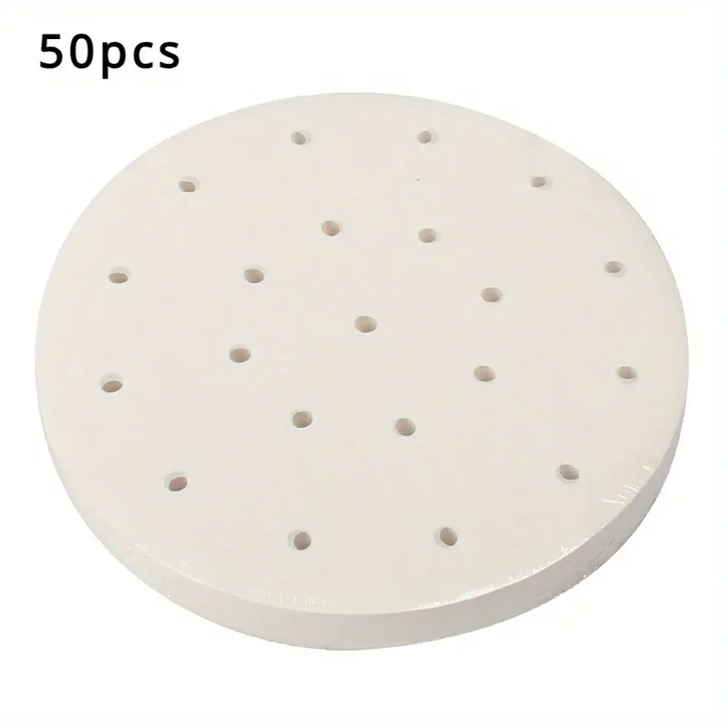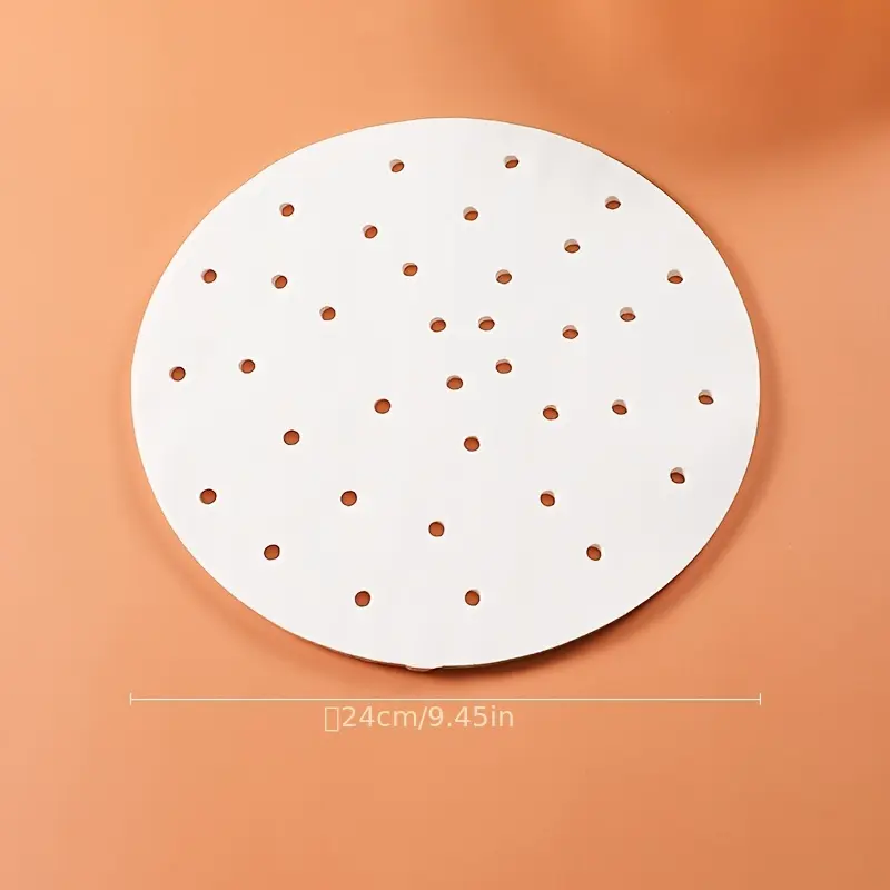Air Fryer Parchment Paper Liners - 24 cm (9.45 inches) - Disposable, Oil- and Water-Resistant - Suitable for Baking Cookies, Grilling, and Steaming - Packs of 50