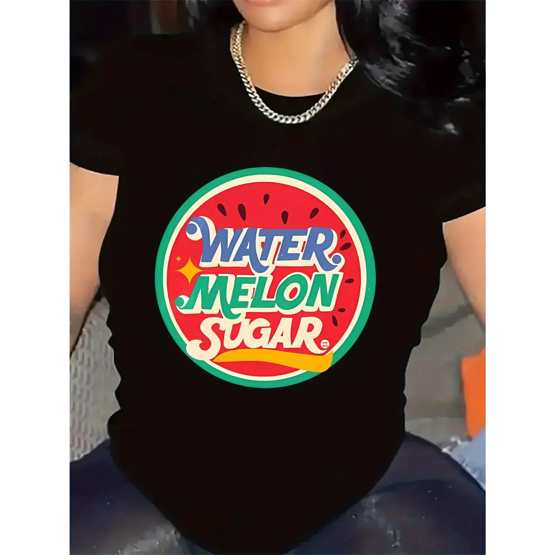 Women'S Summer Watermelon Print Short Sleeve T-Shirt - Fun And Vibrant Design