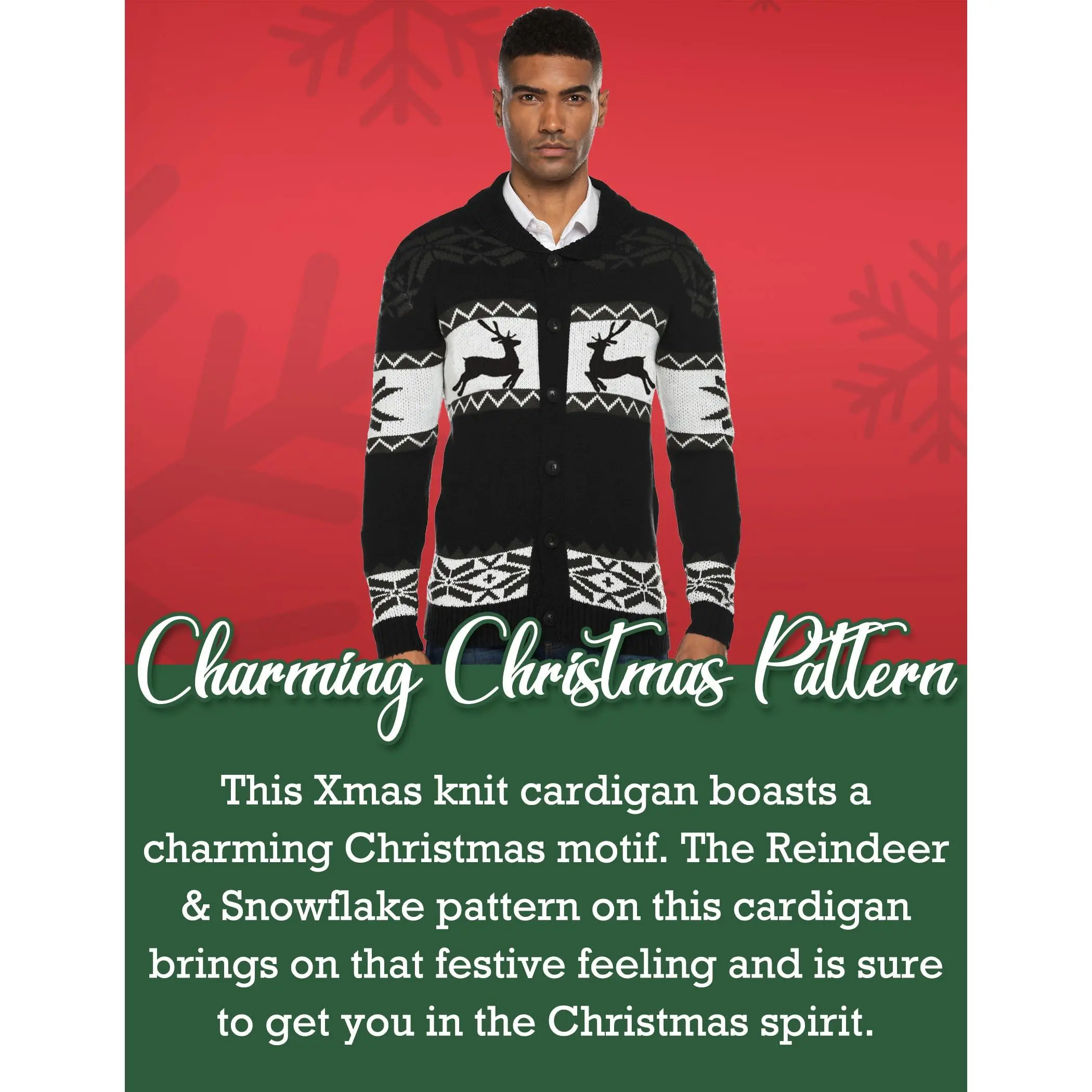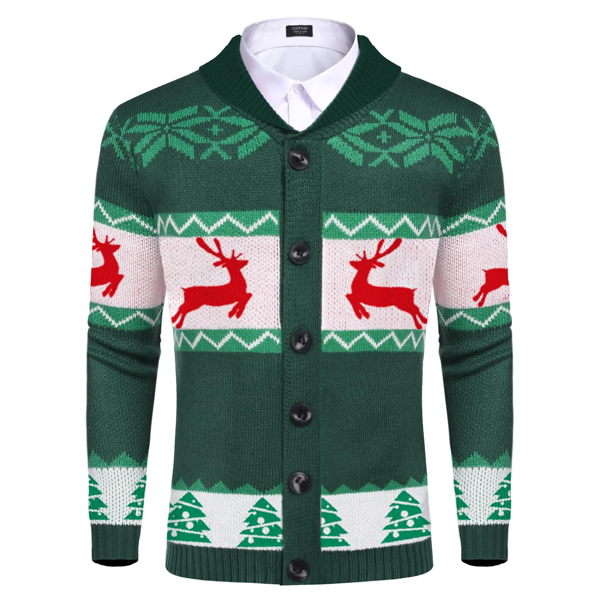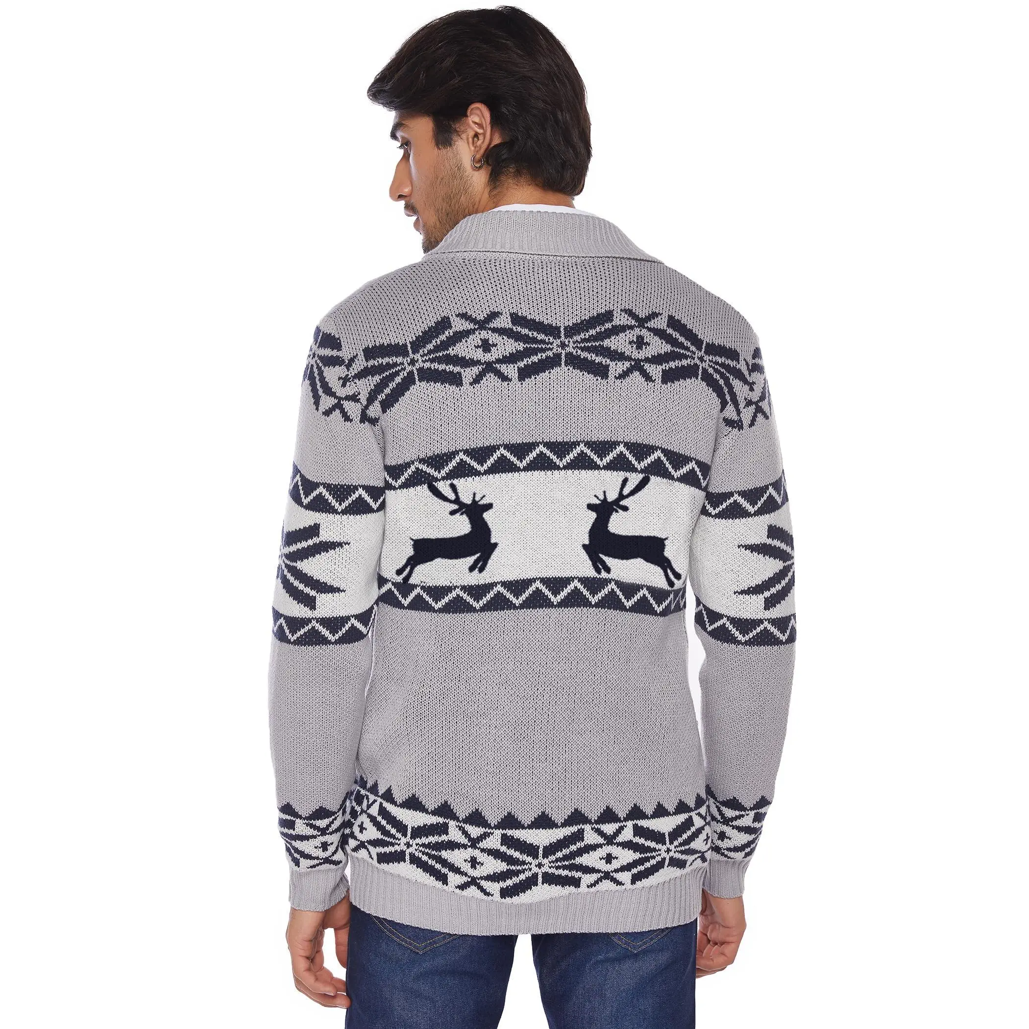 Men's Christmas Cardigans Ugly Xmas Sweaters Reindeer Snowflake Shawl Collar Knitted Cardigan Sweater