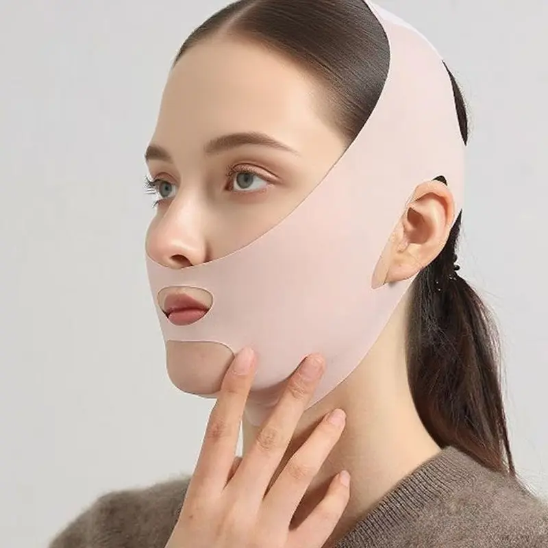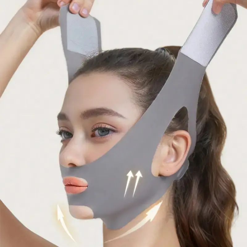 Adjustable Facial Training Band | Sleep Mask, Gray and Pink V-Shaped Bandages for Lifting and Tightening, Non-Seamless Design for Relaxation and Sleep, Suitable for Watching TV, Exercising, or Playing | Comfortable Wear