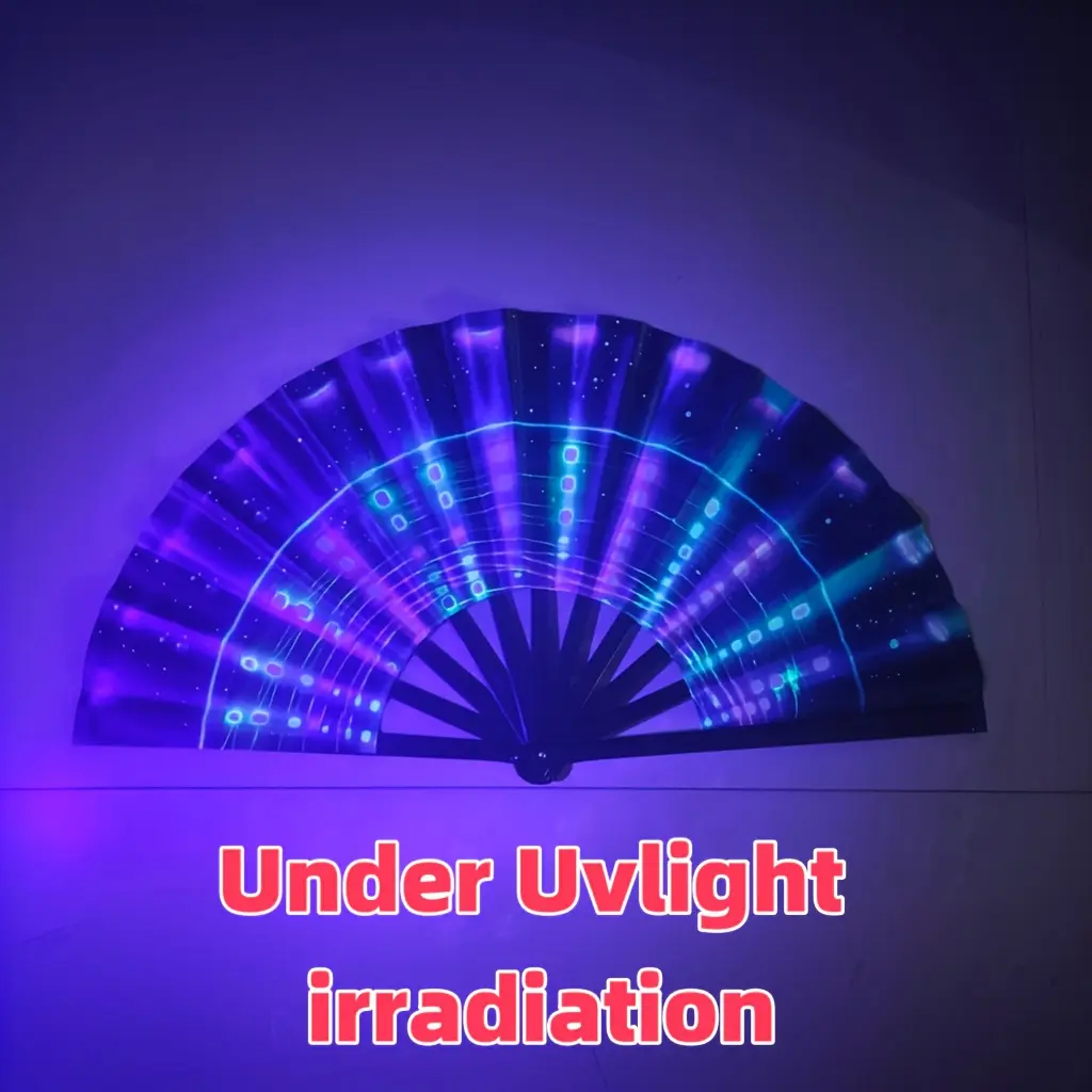 13-Inch 4D printing Neon Birthday Party Fan Blue/Silver/Rainbow/Pink/Black Glow Neon Holo graphic Hand Fan with Water-Resistant, Sweat-Proof Coating Perfect for Music Festivals, Nightclubs, Raves, Outdoor Parties & Hot Weather Events (Vibrant Neon Style)