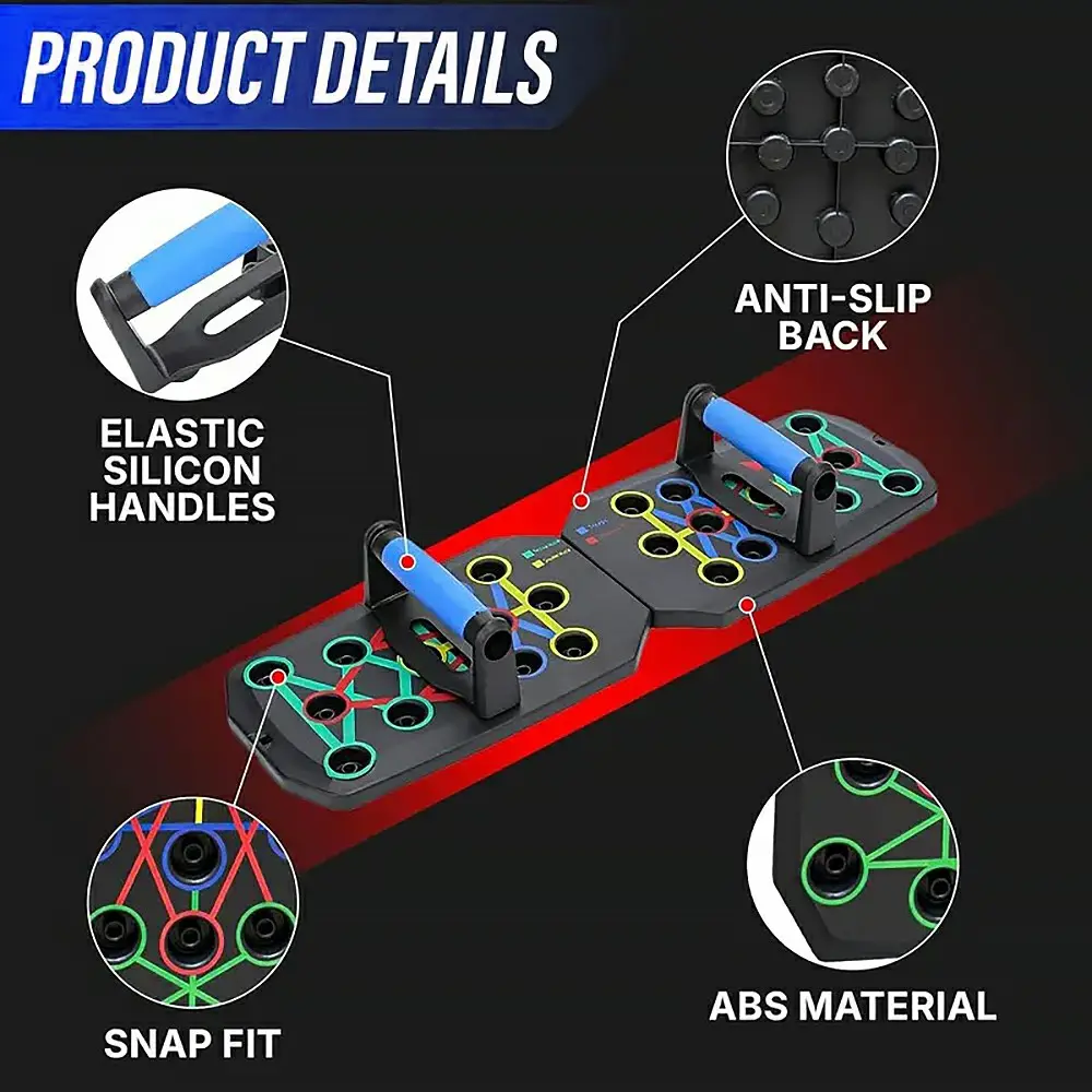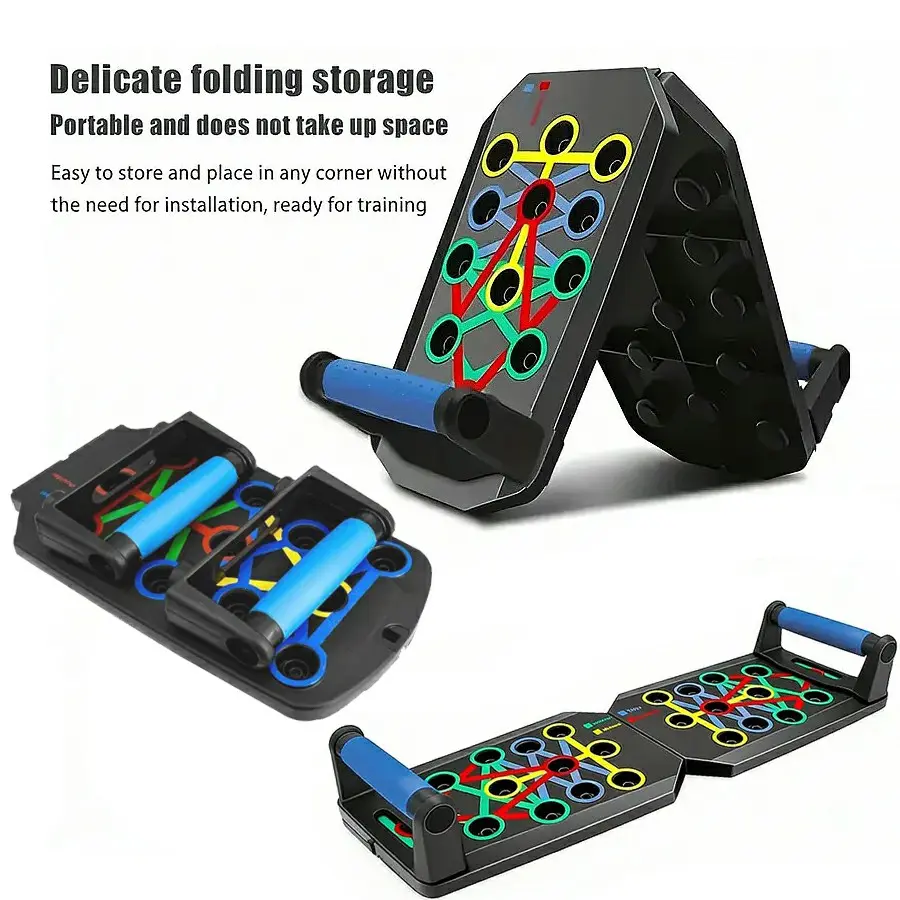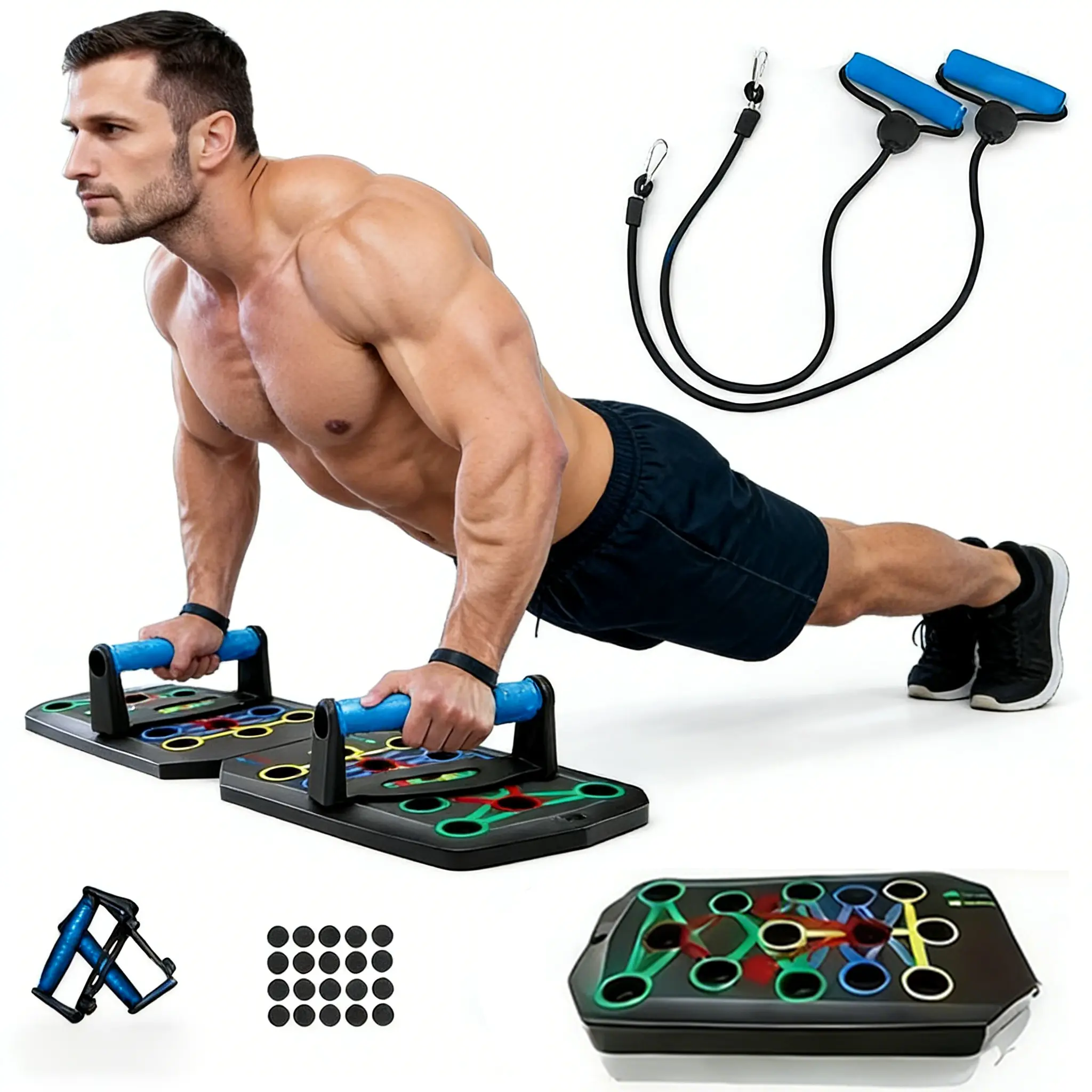 5-in-1 Push Up Board Training Set Portable Home Gym Equipment for Chest & Full-Body Strength Training Foldable Pushup Board with Resistance Bands for Men Women Fitness Addicts