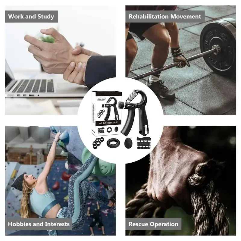 On-the-Go Grip Strengthener Adjustable Hand Trainer for Anytime Forearm Workouts with Resistance and Multiple Accessories for Travel Enthusiasts