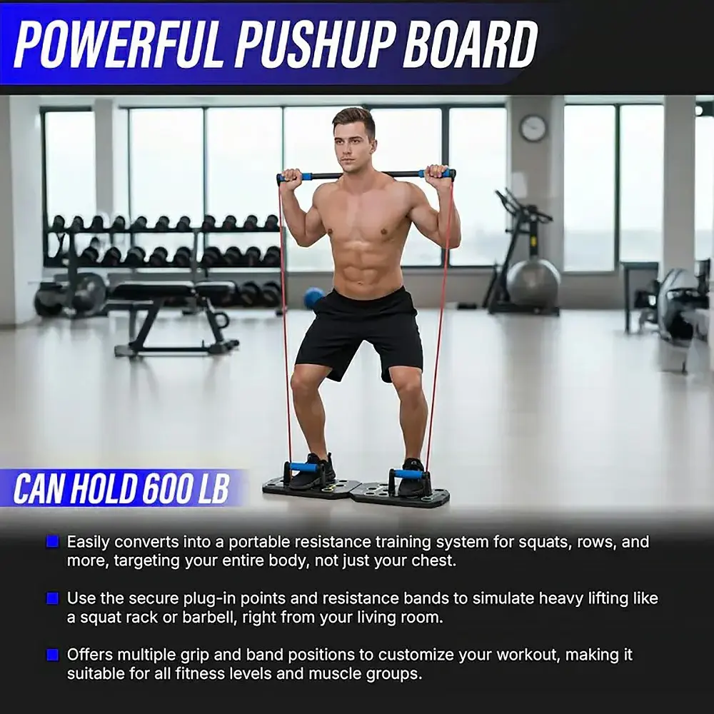 28 Hole Push Up Board Fitness Gear, Portable Home Exercise Equipment with Resistance Bands, Full Upper Body Workout System for Men & Women, Ideal Fitness Gift