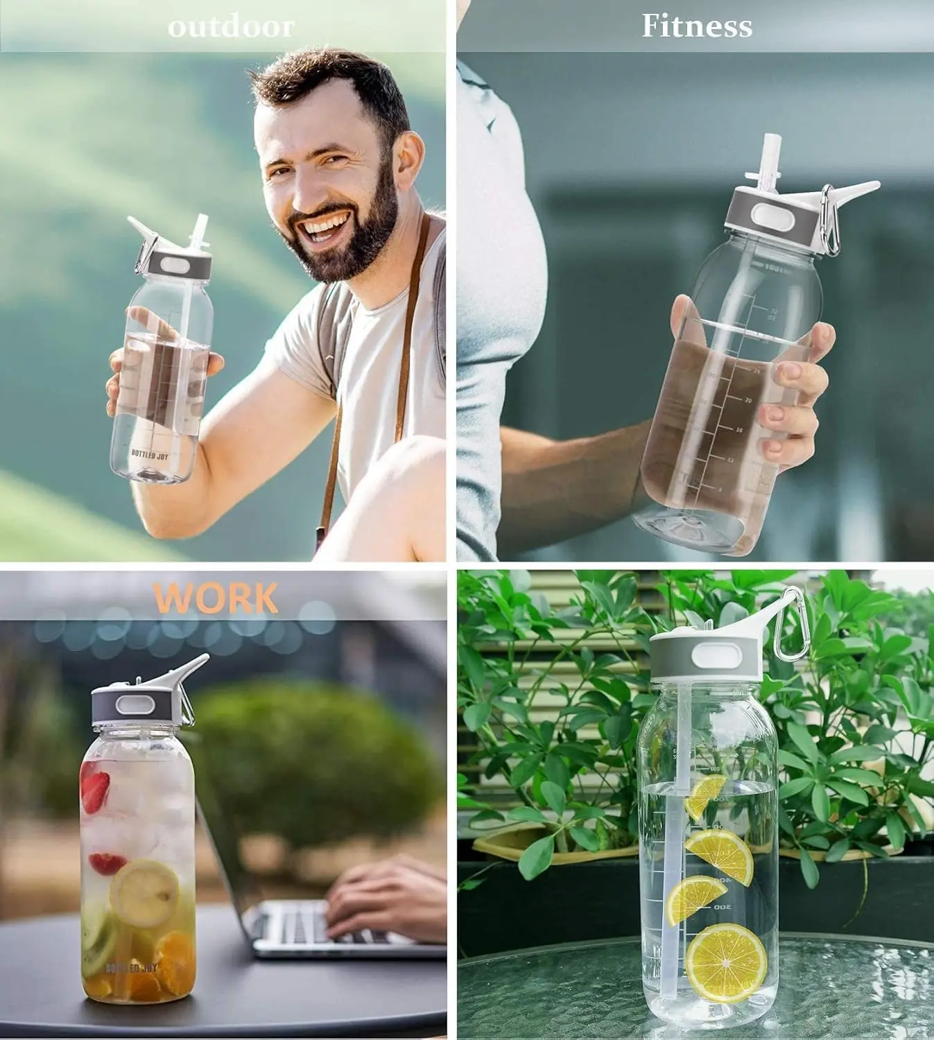 ·[Motivational Time Marker Reminder]Tritan Clear water bottles with time markers and volume scales ,they're provide a clear, visual guide to help you measure and meet your daily water intake goals. the drinkg sports water bottle naturally reminds you to drink water at regular intervals throughout the day, ensuring you stay consistently hydrated.