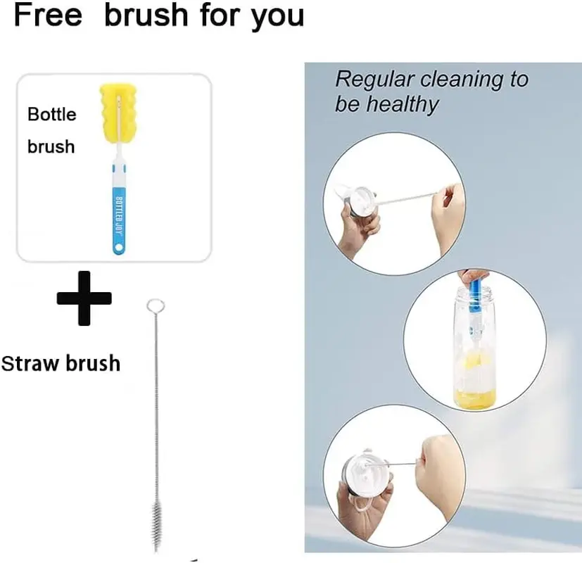 ·Use and Care Tips: 1. No hot liquid above 210℉; 2. Dishwasher safe; 3. Clean with baking soda and vinegar; 4. Don’t leave in the car on a hot day; 5.including the Free brush for cleaning the water botle .